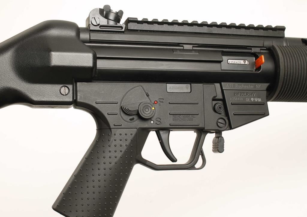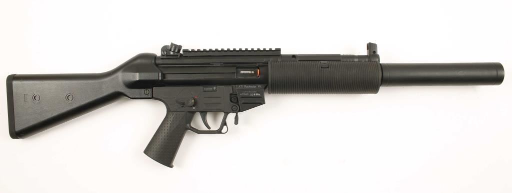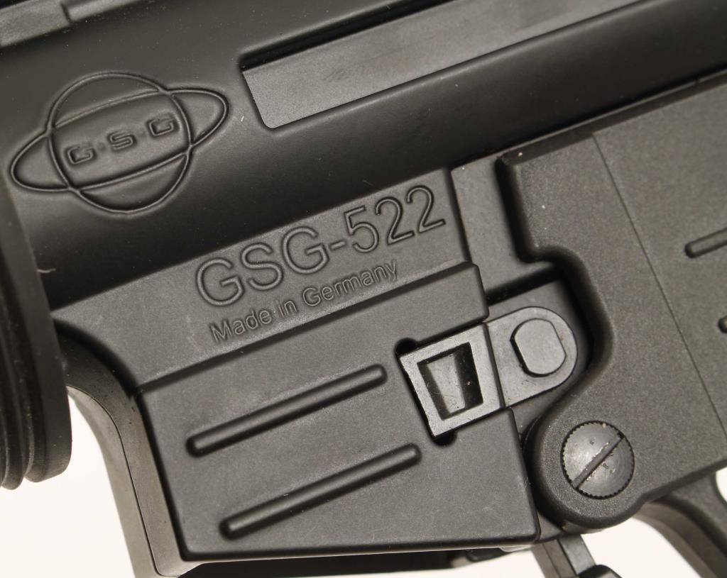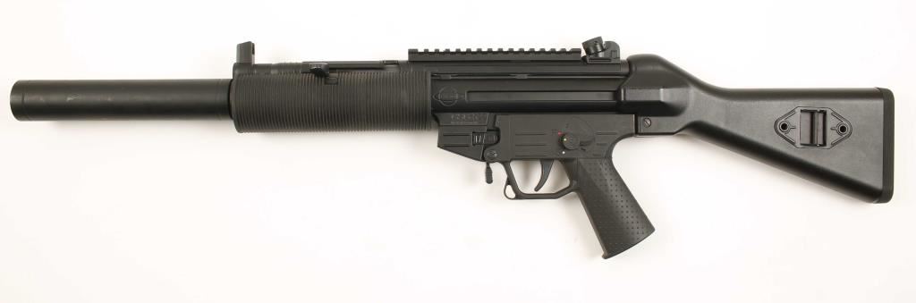 German Sport Gun semi-automatic .22 caliber rifle, tactical type with black synthetic stock and rubber foregrip. 16.25" barrel, faux suppressor and no magazine. Condition is very good +. *Modern Firearm*
