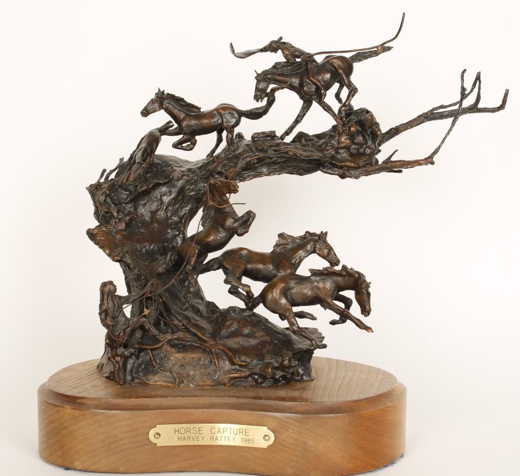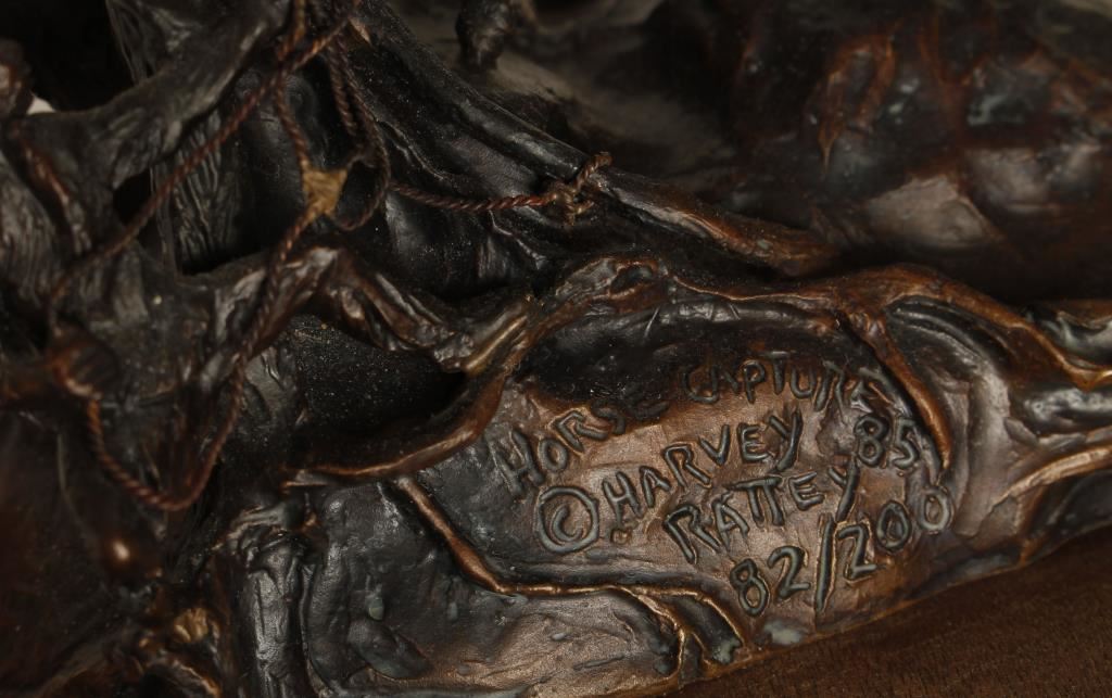 "Horse Capturer" by Harvey Rattey. Limited Edition 1985 82/200 signed by artist. 12"X10 1/2". Wood base. Gallery price 1100.