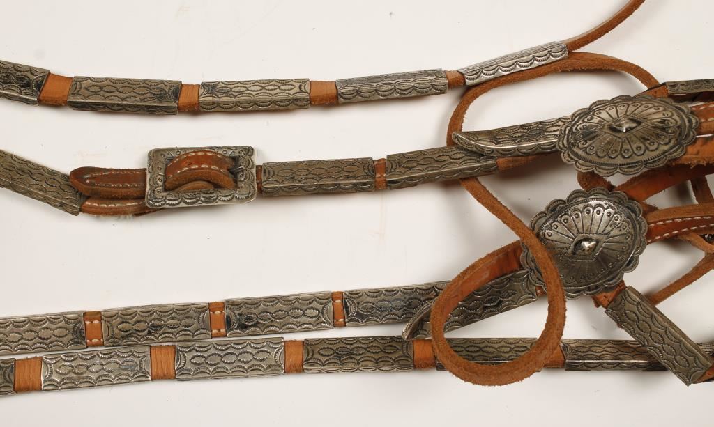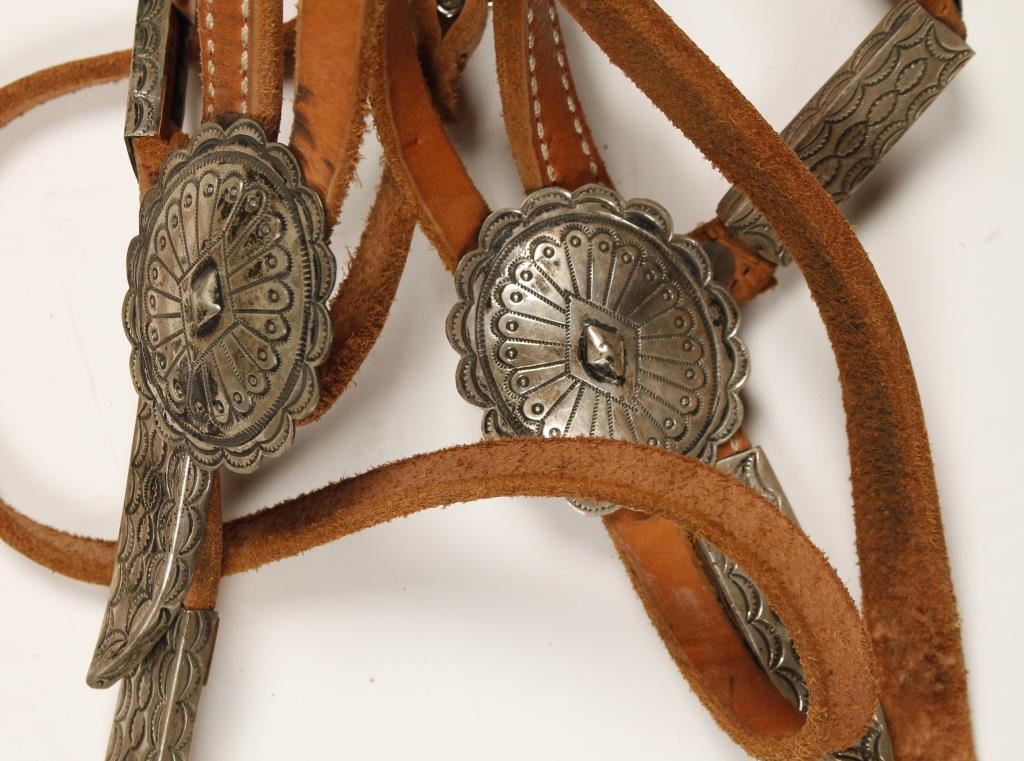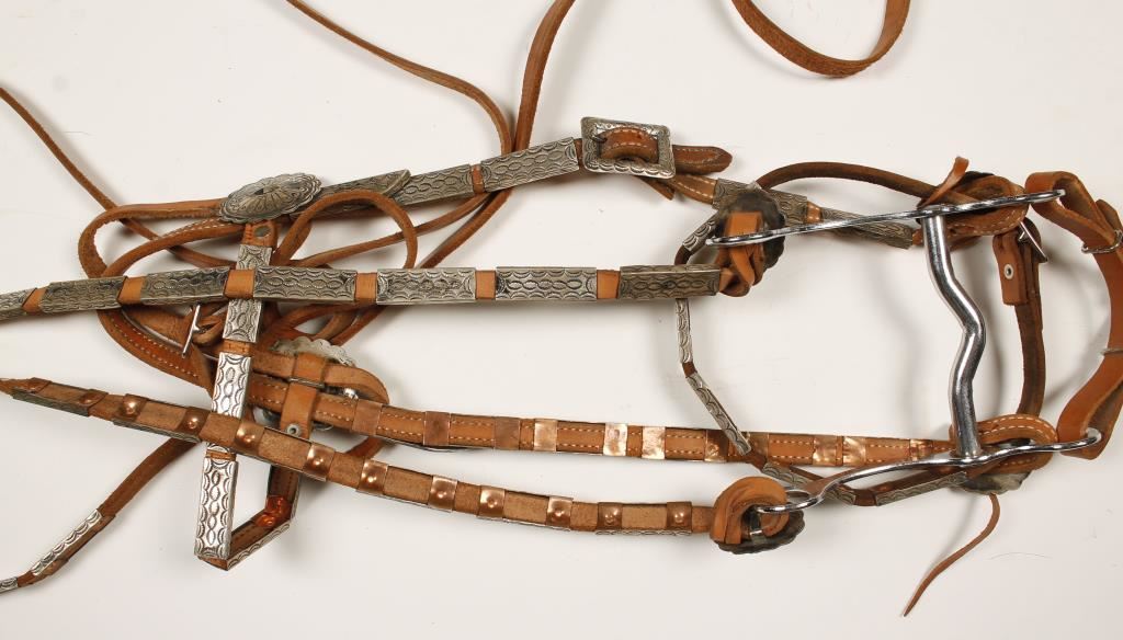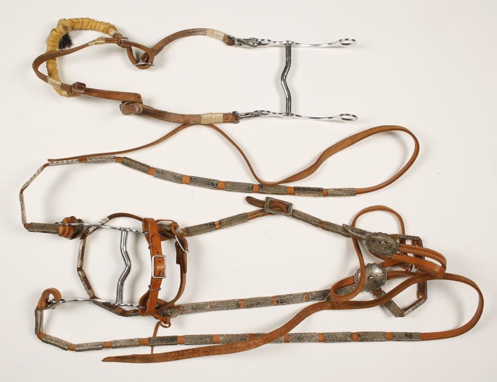 1 Navajo made by Hee Haw sterling silver decoration includes bit and reins, unmarked. 1 working bit that is leather wrapped.