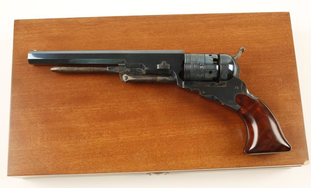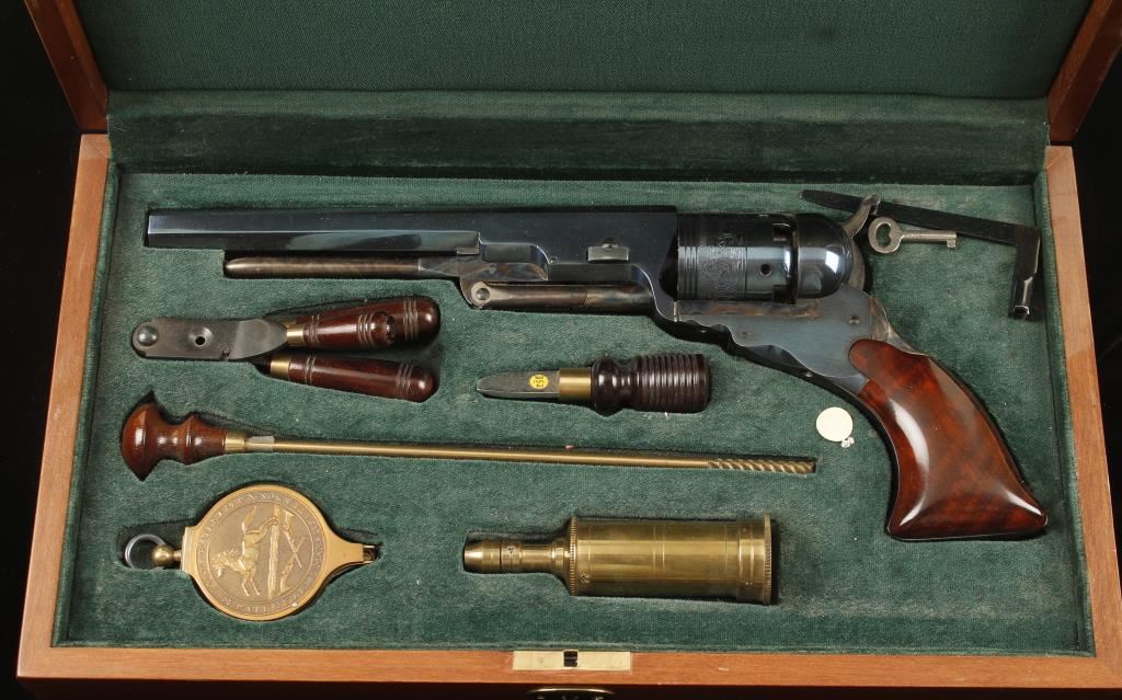 High quality Italian made reproduction of a Colt Texas Patterson. Beautifully reproduced black powder revolver, cased with accessories. Well marked with correct address and quality throughout. In very good condition, one of the best copies this describer has seen. ***Antique Firearm***