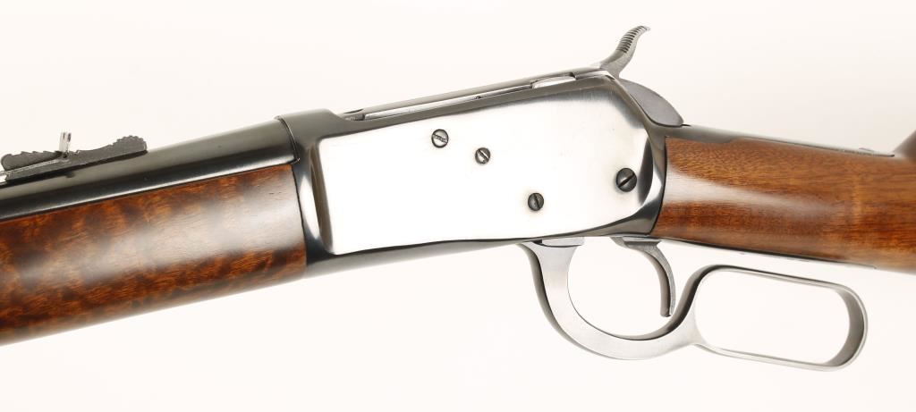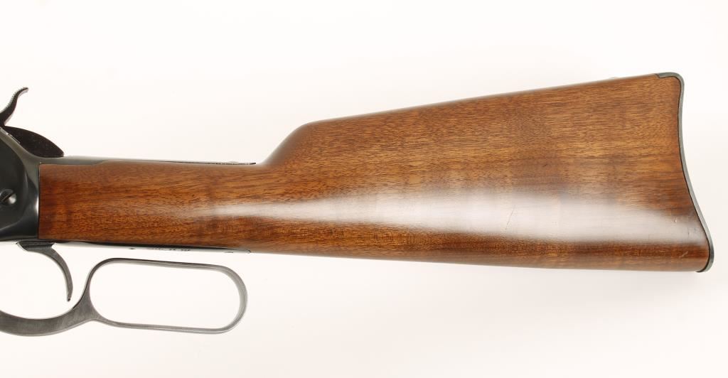 Brazilian tube fed lever action sporting rifle chambered in .45 Colt, modeled after the Winchester 1892. This rifle has the action re-worked for cowboy action shooting/re-enacting. Features a 20" blued barrel, full magazine tube, fixed front sight, rear sporting sight, blued receiver, hammer, trigger & lever and walnut straight grip stock and forearm. Bore bright with strong rifling. Condition is very good. ***Modern Firearm***