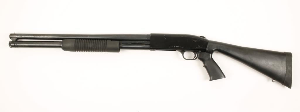 Slide action tube fed shotgun chambered in 2 3/4" & 3" 12 gauge shells. Features a 20.75" blued barrel, front bead sight, full tube magazine, blued receiver, safety switch. polymer slide handle and aftermarket pistol grip shoulder stock with rubber recoil pad. Bore is bright, action is smooth, has scratches on receiver, rust on barrels and has a sheered bolt at top of receiver. Condition is good. ***Modern Firearm***