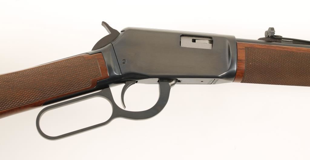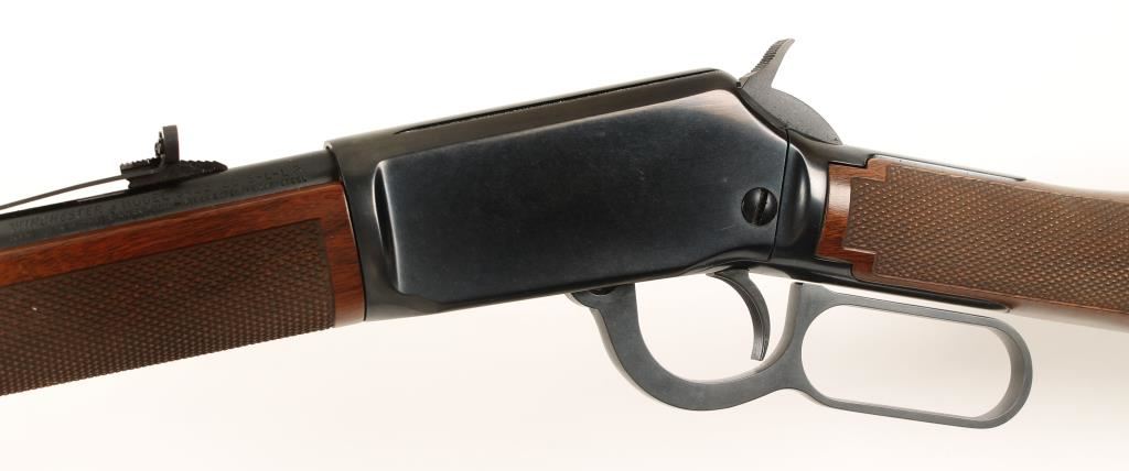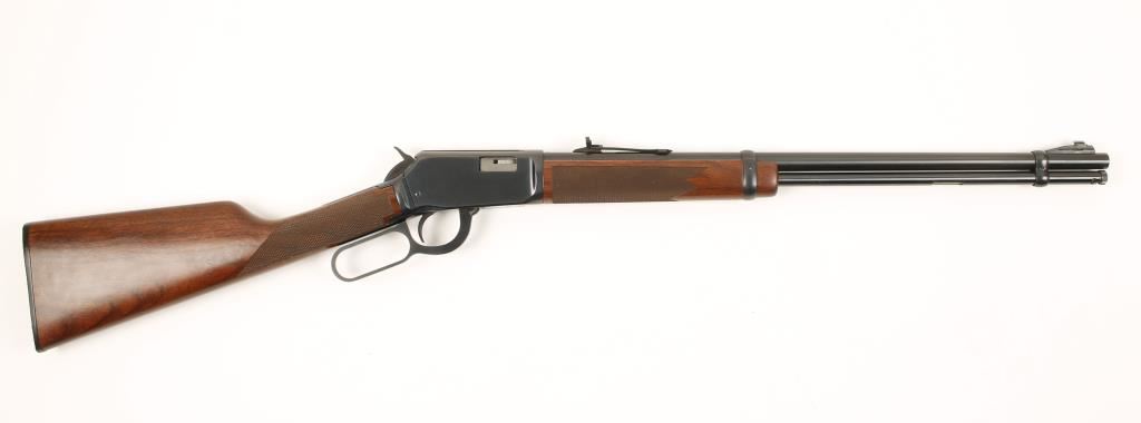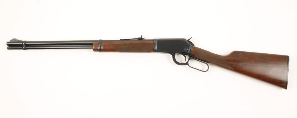 Lever action tube fed sporting rifle chambered in .22 caliber. Features a 20 1/2 " blued barrel, front ramped sight, semi-buckhorn rear sight, blued receiver milled with scope rail, blued lever, hammer & serrated trigger, full tubular magazine and checkered American Walnut stock and forearm. Bore is very good and action is super smooth. Condition is near excellent. ***Modern Firearm***