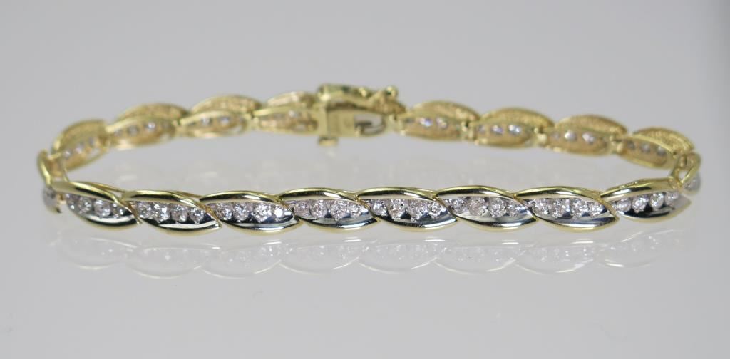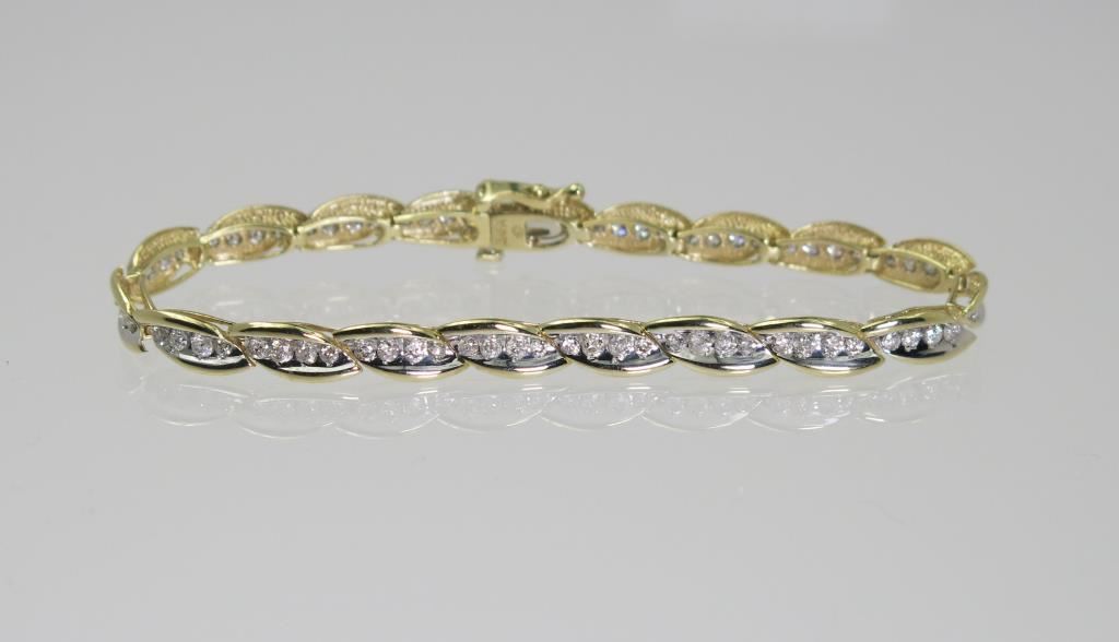 76 round cut diamonds weighing approx. 1.00 carats total with H-I colors and set in 10 karat yellow gold.
