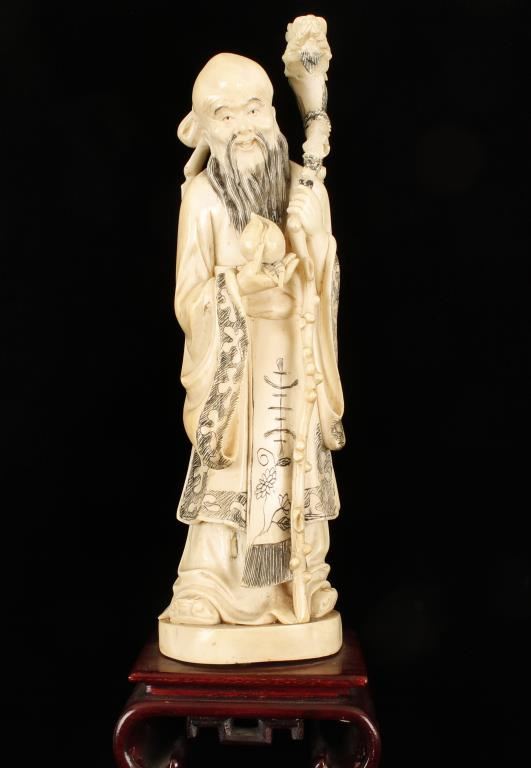 Lot 206 Chinese Ivory Figure on Wood Base