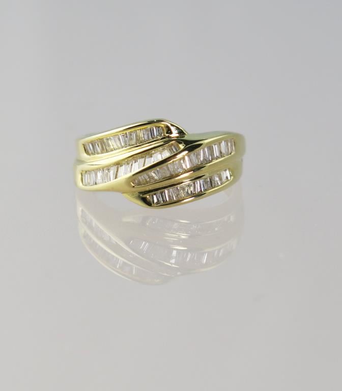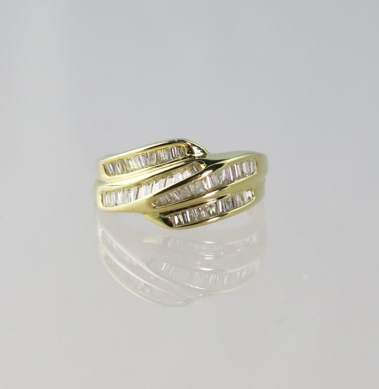 Approx. 1.25 carats of channel set baguettes with H-I colors and SI-I clarity set in 14 karat yellow gold.