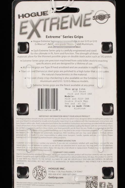 Hogue Extreme Series two piece black aluminum grips with checkered pattern for Sig Sauer P228 & P229 DAK both 9mm & .40 caliber. Retails for over $100 new.