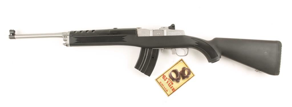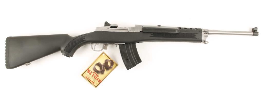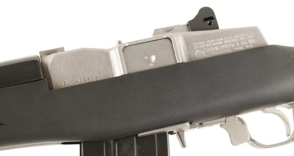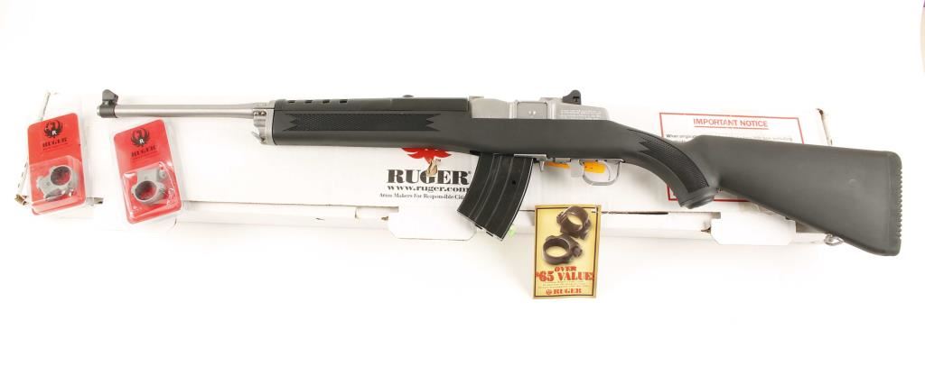 Semi automatic magazine fed ranch rifle chambered in 7.62x39. Features a 16.5" stainless barrel, blade front sight, investment cast heat-treated receiver, adjustable rear sight, synthetic stock & hand guard, 20 round magazine and safety lever. Includes original factory box, scope rings, tool and lock. Finish has little to no wear, bore is excellent as is the action. Has an original tag still attached to trigger guard and consignor believes it to be unfired. Condition is like new in box. ***Modern Firearm***