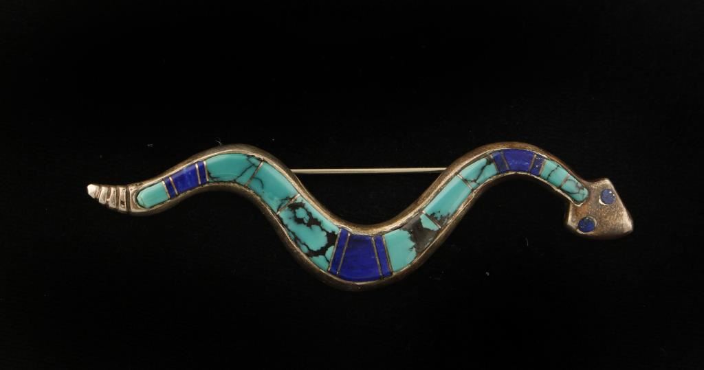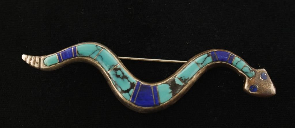 Lot 272 Native American Turquoise & Lapis Snake Brooch