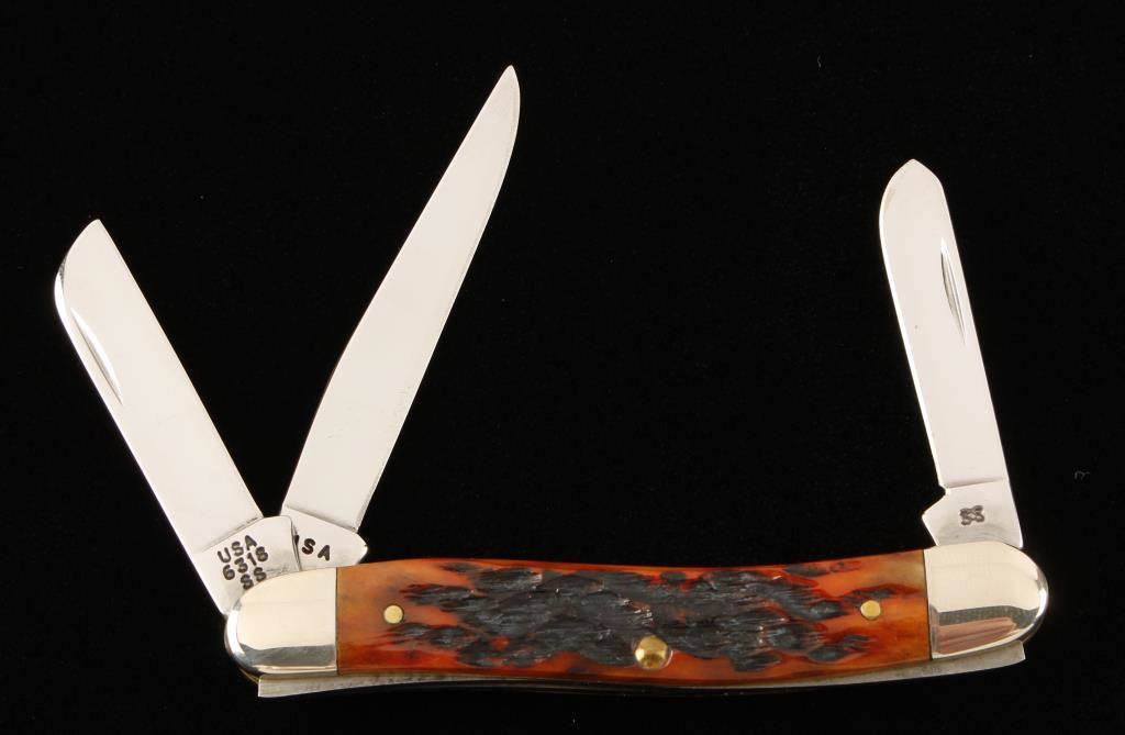 6316SS. Made in 2000. Handles are jigged bone or Delrin. In collector's tin. Mint condition.