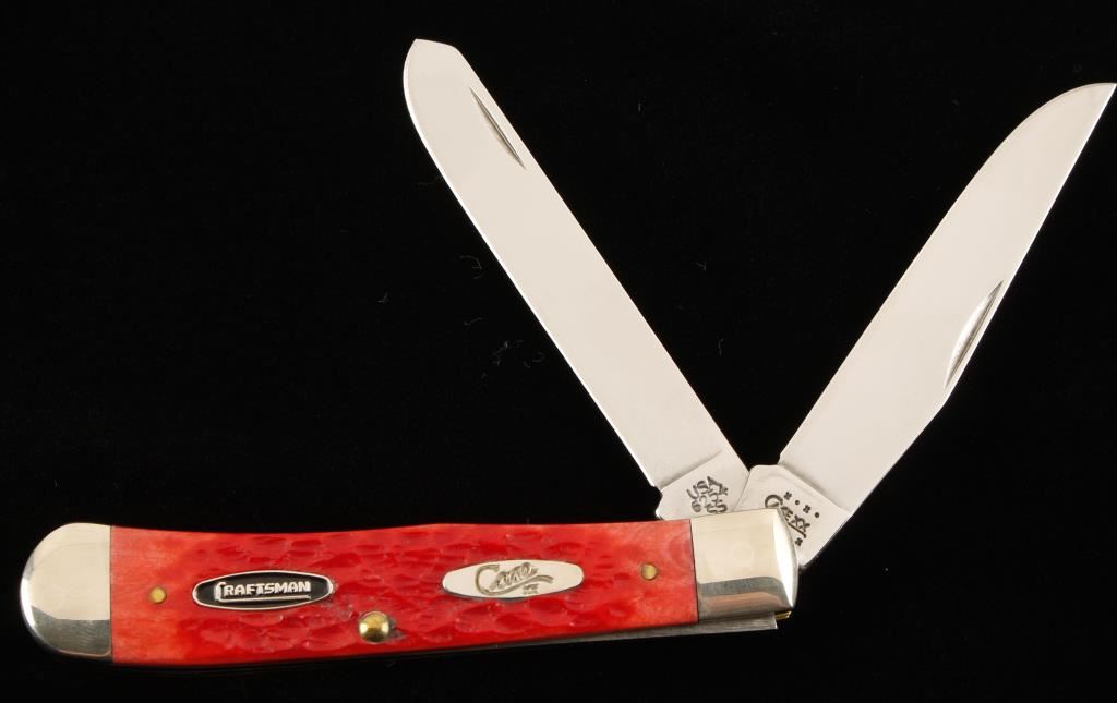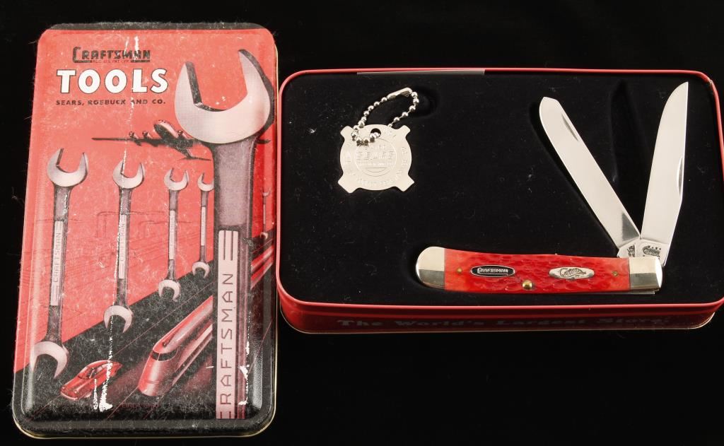Craftsman Commemorative made for the Sears Roebuck Co. Made in 2001. Two stainless steel blades. 6254SS with red Delrin or bone handle with Craftsman encased logo on handle. In commemorative tin. Mint condition.