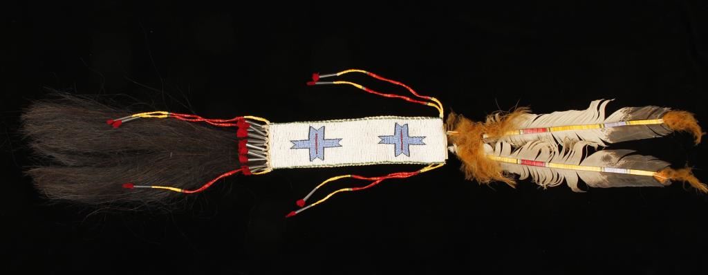 Indian made with Horsehair and other decorations.