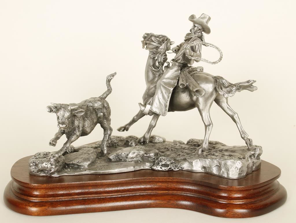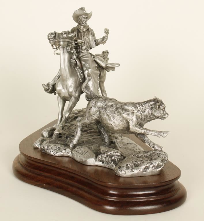 'Maverick Calf' 9"x5 1/2" Cowboy with lasso on horseback goes after a runaway calf.