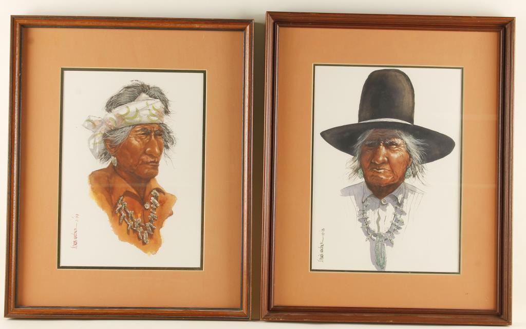 Both of Indian Elders, 1 signed 'Louis Weber 10-78', the other 'Louis Weber 2-79'. Images measure 9 1/2"x13 1/2" in double mats with wood frames.