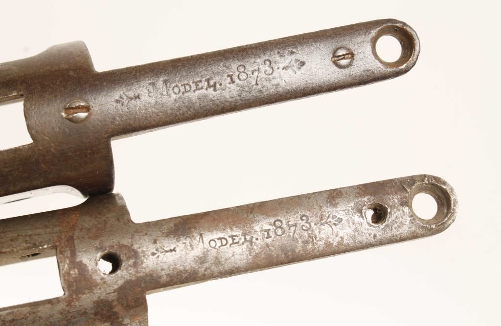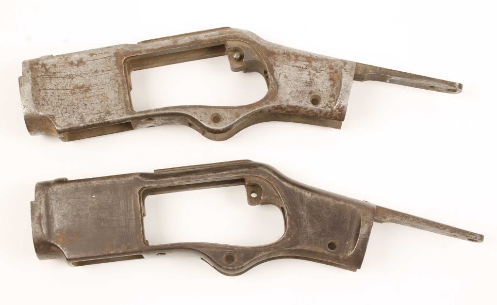 Receivers only, one with brown patina, for a large cartridge and little rust, the other is in the white, for a mid size cartridge and with much rust. ***Antique Firearms***