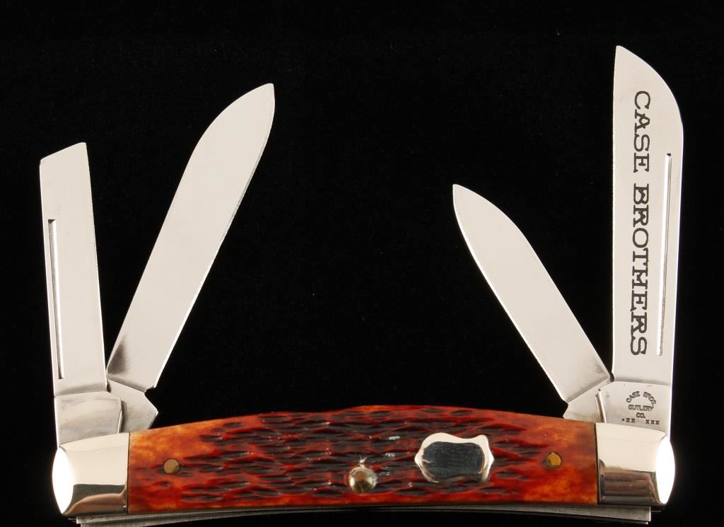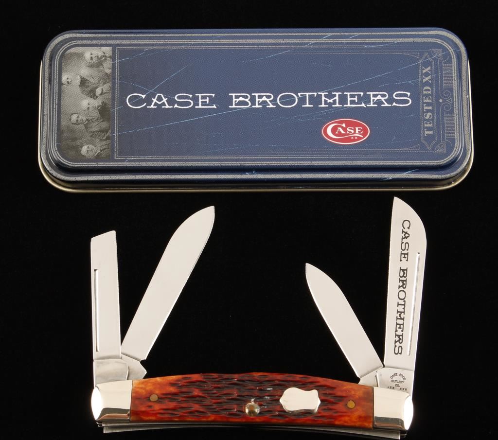 One blade is etched 'Case Brothers', jigged bone or Delrin chestnut handle. 64052SS. Retail price $90.10