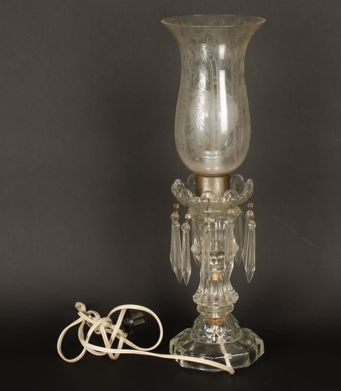 Lot 468 Hurricane Lamp with Hanging Crystals