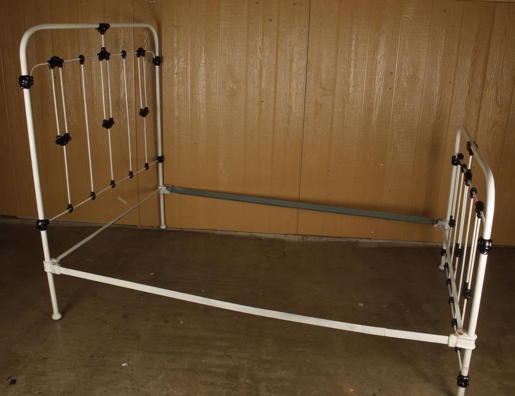 Lot 484 Antique Wrought Iron Black & White Bed Frame