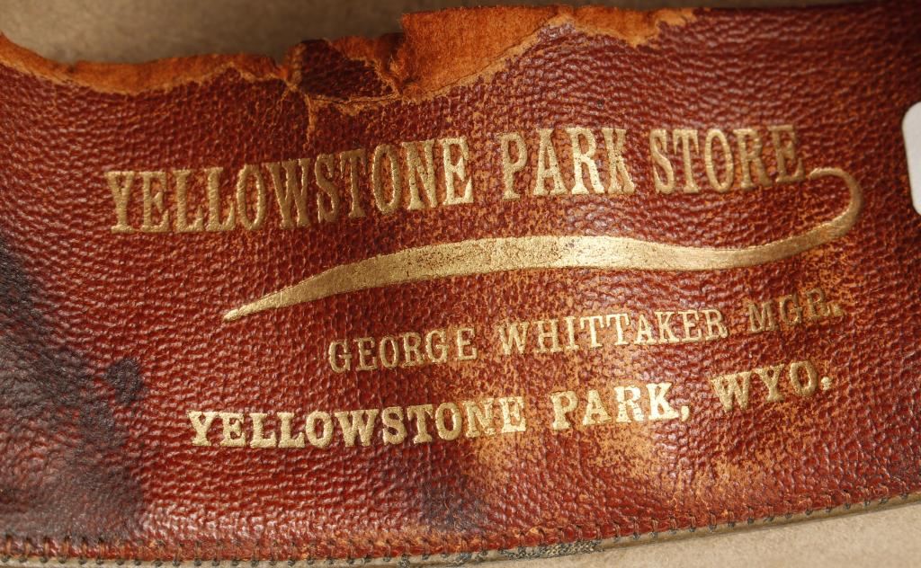 1 stone colored 10 gallon hat with rattlesnake hatband and 1 from the Yellowstone Park store size 7 1/8. Both show wear.