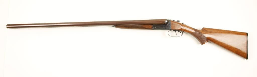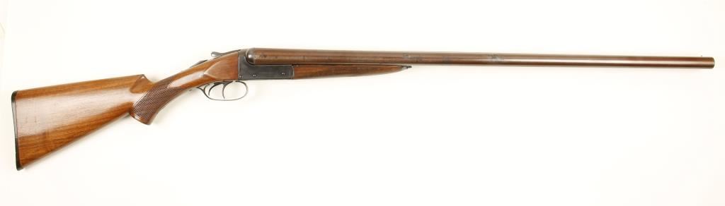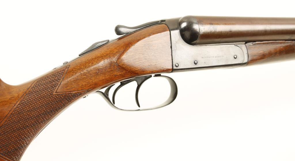 Hammerless side by side 12 gauge shotgun by Remington. Features 30" damascus barrels turned to plumb, reblued receiver, tang safety switch, brass bead sight, double triggers & checkered pistol grip stock. Overall condition is good as refinished and plumb barrels. ***Antique Firearm***