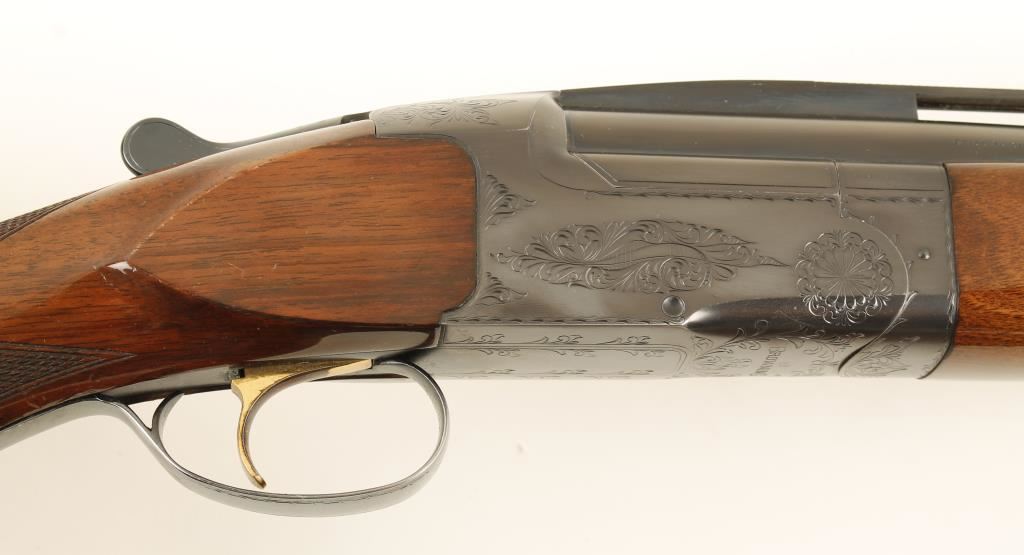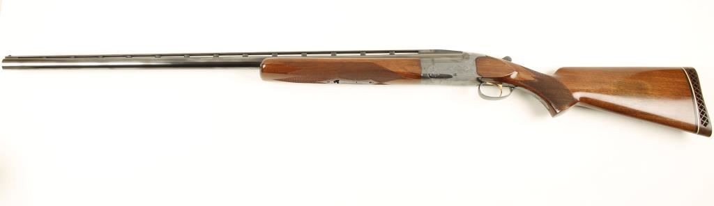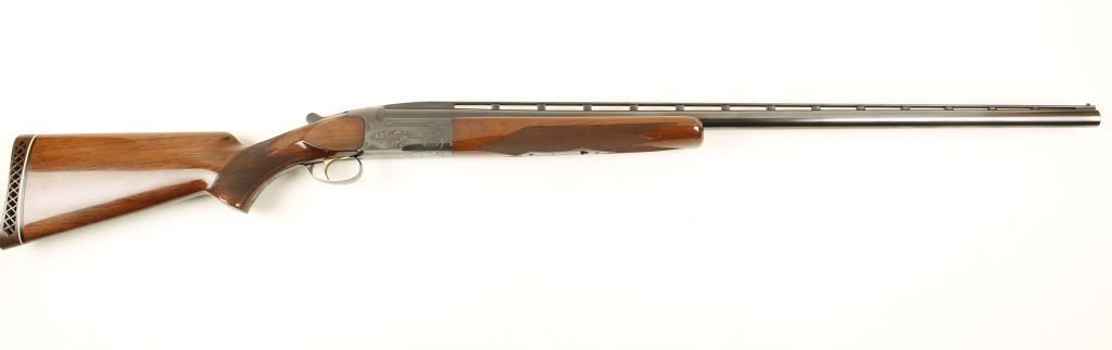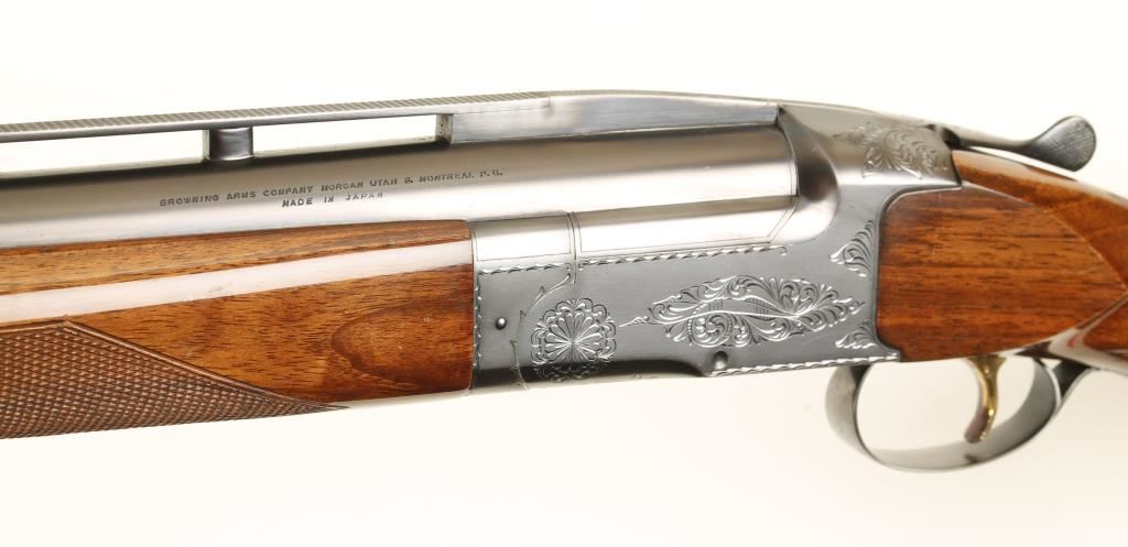 Japanese made single shot break open 12 gauge shotgun by Browning. Features a 32" blued vent rib barrel, double bead sights, engraved blued receiver, gold plate trigger & checkered pistol grip stock. Condition is excellent with minor blemishes to stock. ***Modern Firearm***
