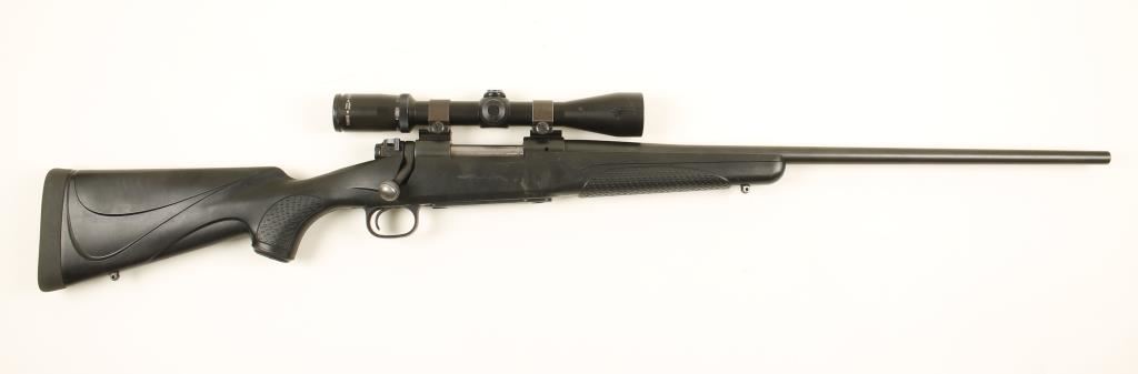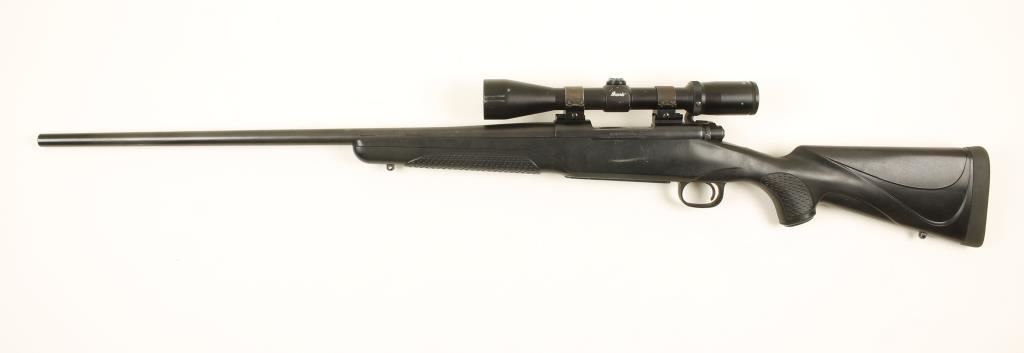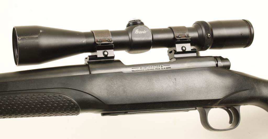 SN: G2466995 Bolt action hunting rifle cambered in .270 Winchester Short Magnum. manufactured by Winchester. Features a 24" barrel with matte blued finish, mounted Burris 3x - 9x FullField II scope, steel receiver with matte blued finish, safety switch on bolt, blind magazine and composite stock with sling swivels. Condition is very good with blue fading on bolt handle and some scratches on stock. ***Modern Firearm***