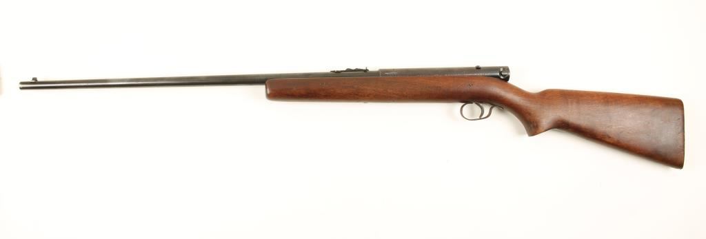 Semi automatic tube fed .22 caliber rifle by Winchester. Features a 24" blued barrel, fixed front sight, rear sporting sight, blued receiver, tubular magazine, safety switch and one piece walnut pistol grip stock. Condition is good with a considerable amount of scattered surface rust. ***Modern Firearm***