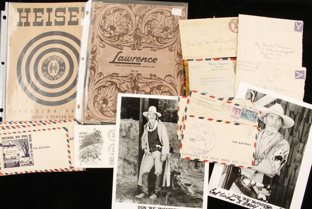 Includes (2) Heiser catalogs, (2) S.D. Meyers catalogs, and (1) Lawrence catalog. Also included is (2) signed photos of Don "Ike" Mcfadden, a "Man's first landing on the moon" postcard & stamp, and other misc. correspondents.