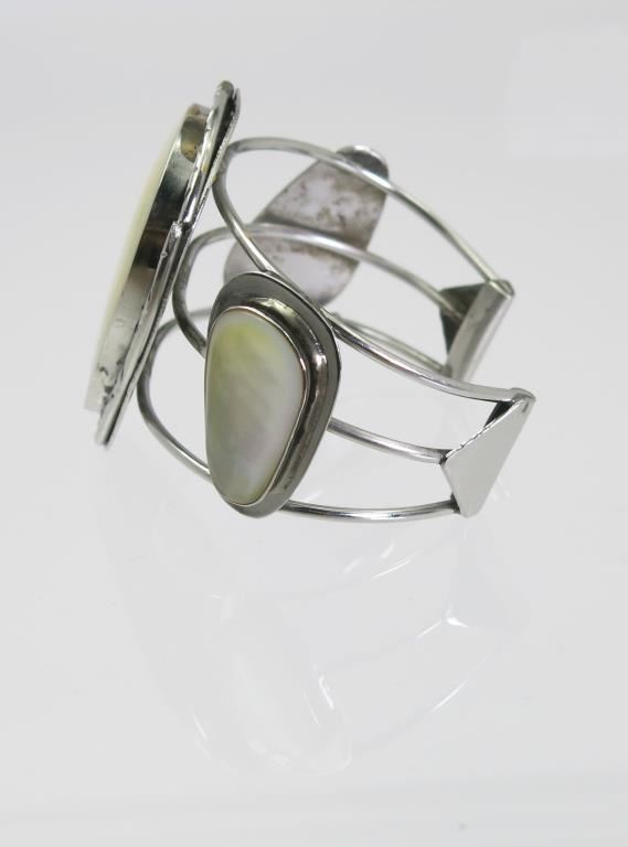 Mother of pearl and sterling silver bracelet.
