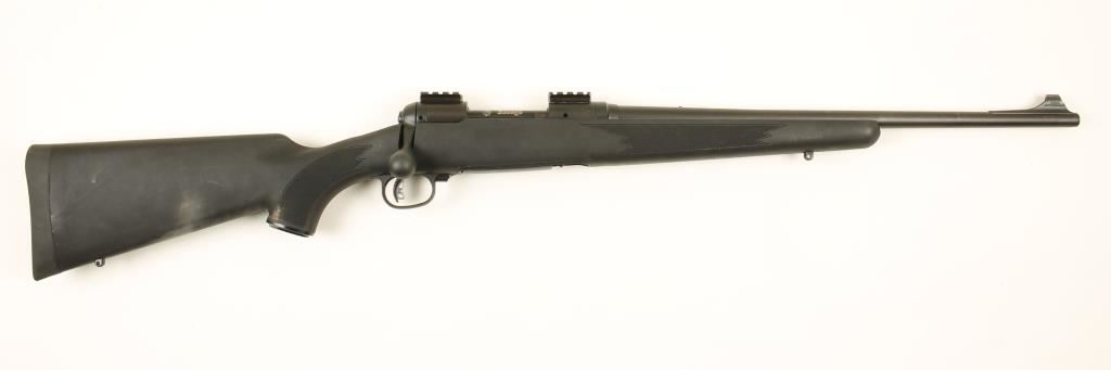 Blued bolt-action rifle with a 20" barrel, one detachable box magazine, two piece scope rail, factory box, nylon sling, QD sling swivels, security lock and a few documents. Metal finish is matte and has no visible scratches. The bore is mirror bright. The action works well with the Accu-Trigger. The matte synthetic has checkering on the forend and the wrist. Condition is near new. *Modern Firearm*