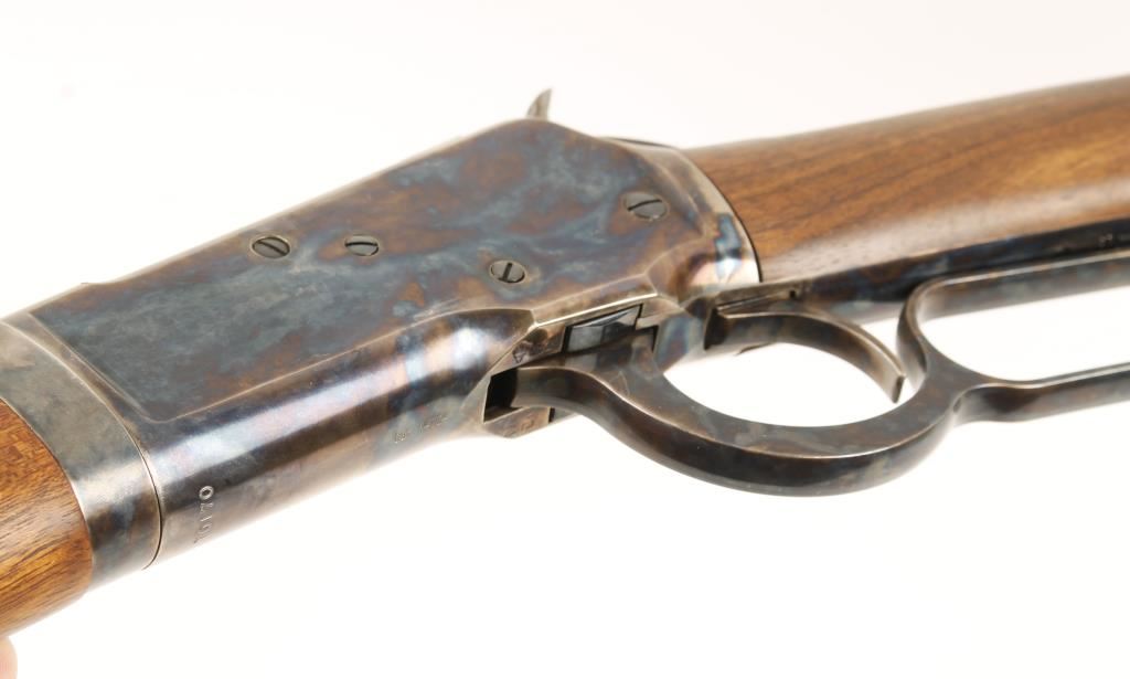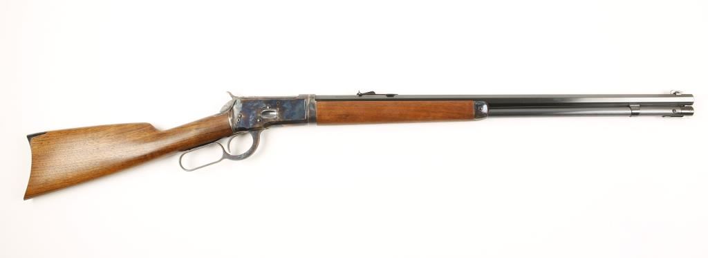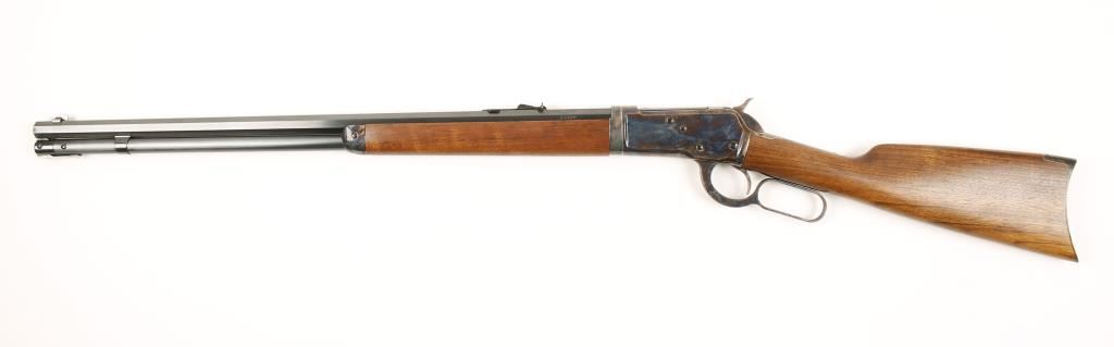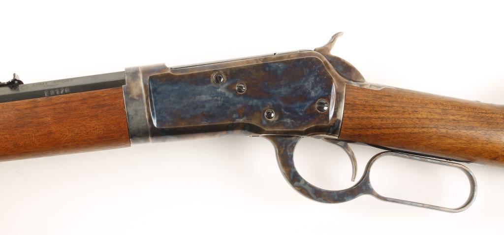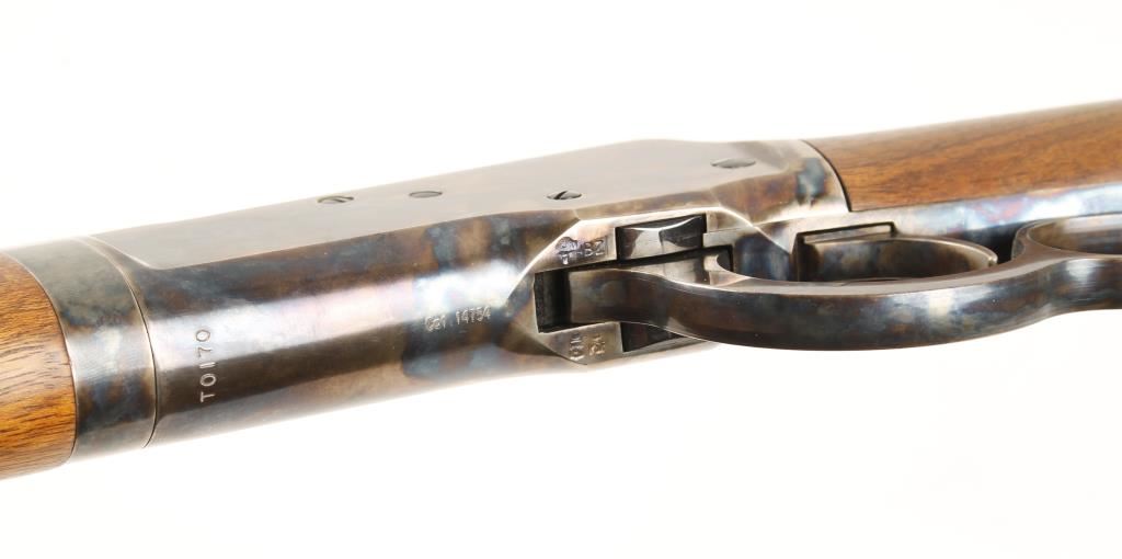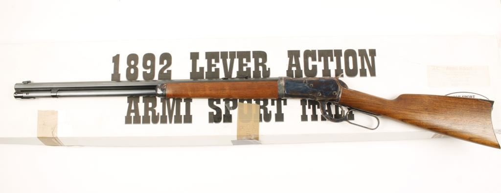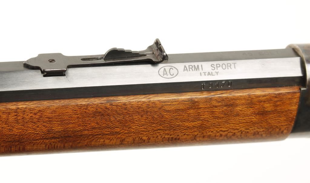 SN: T0170 .Lever action tube fed sporting rifle in .45 Long Colt modeled after the Winchester 1892, manufactured by Armi Sport for Cimarron. Features a 24" blued octagonal takedown barrel, blued full tube magazine, adjustable rear sporting sight, fixed front sight, walnut straight grip stock and forearm and case hardened receiver, lever, trigger, hammer and crescent buttplate. Bore is excellent and possibly unfired. Condition is like new in box. ***Modern Firearm***