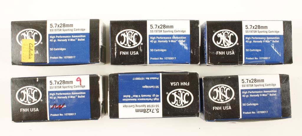 259 rounds of FN 5.7 x 38mm Sporting Cartridges high performance ammunition with 40 grains Hornady V-Max bullets.