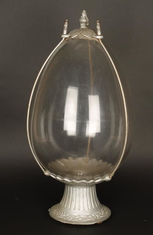 These hanging show globes have also been called 'Apothecary Globe Chandeliers' or simply 'Show Globes'. An amazing piece of history, used to designate an alchemist or pharmacist, they were used in various ways. Some theories for their use is that they were illuminated, or brightly colored liquid or potions were once placed in them to designate that treatment was available, to let travelers know if there was a plague in town (red liquid), or to show direction for sailors, etc... Glass and metal construction, very good condition. Great display piece.