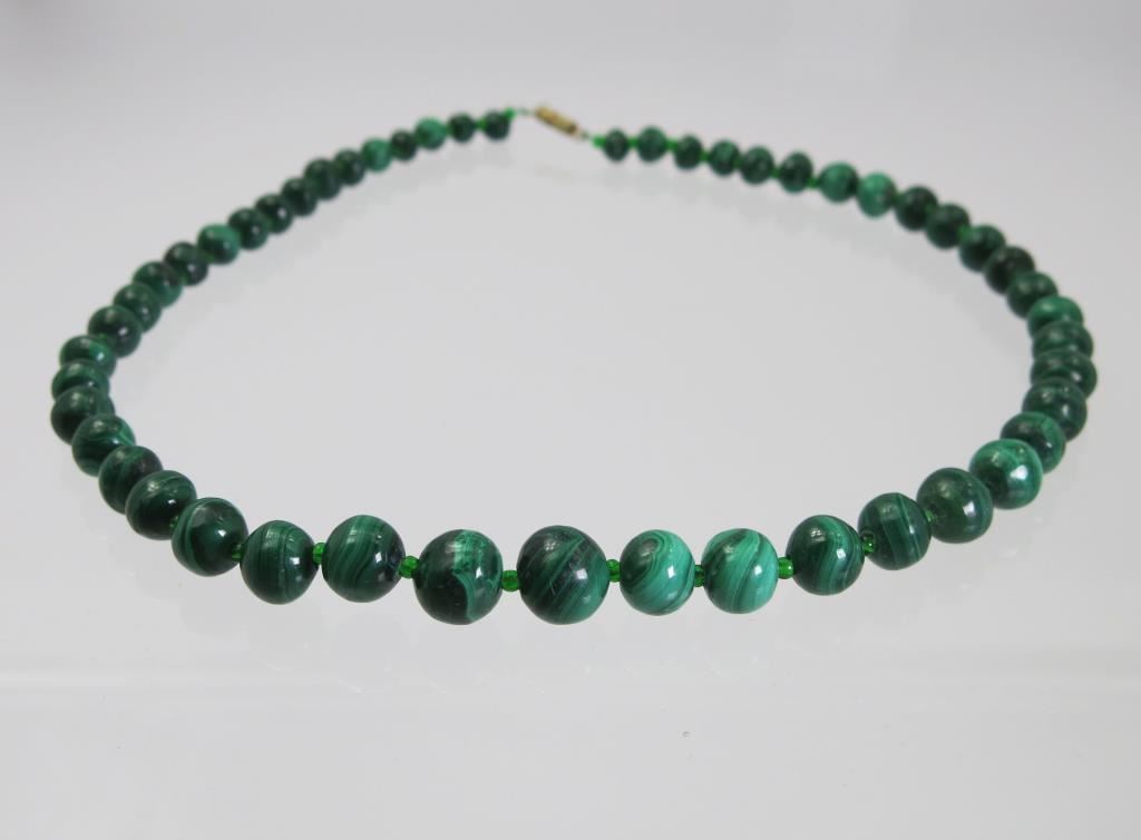 Beads graduate in size from 8mm to 12mm in diameter and length 19.5"