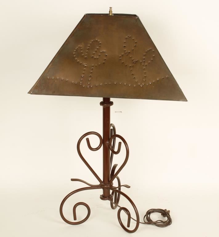 Lot 946 Copper Shade Lamp with Cactus Motif