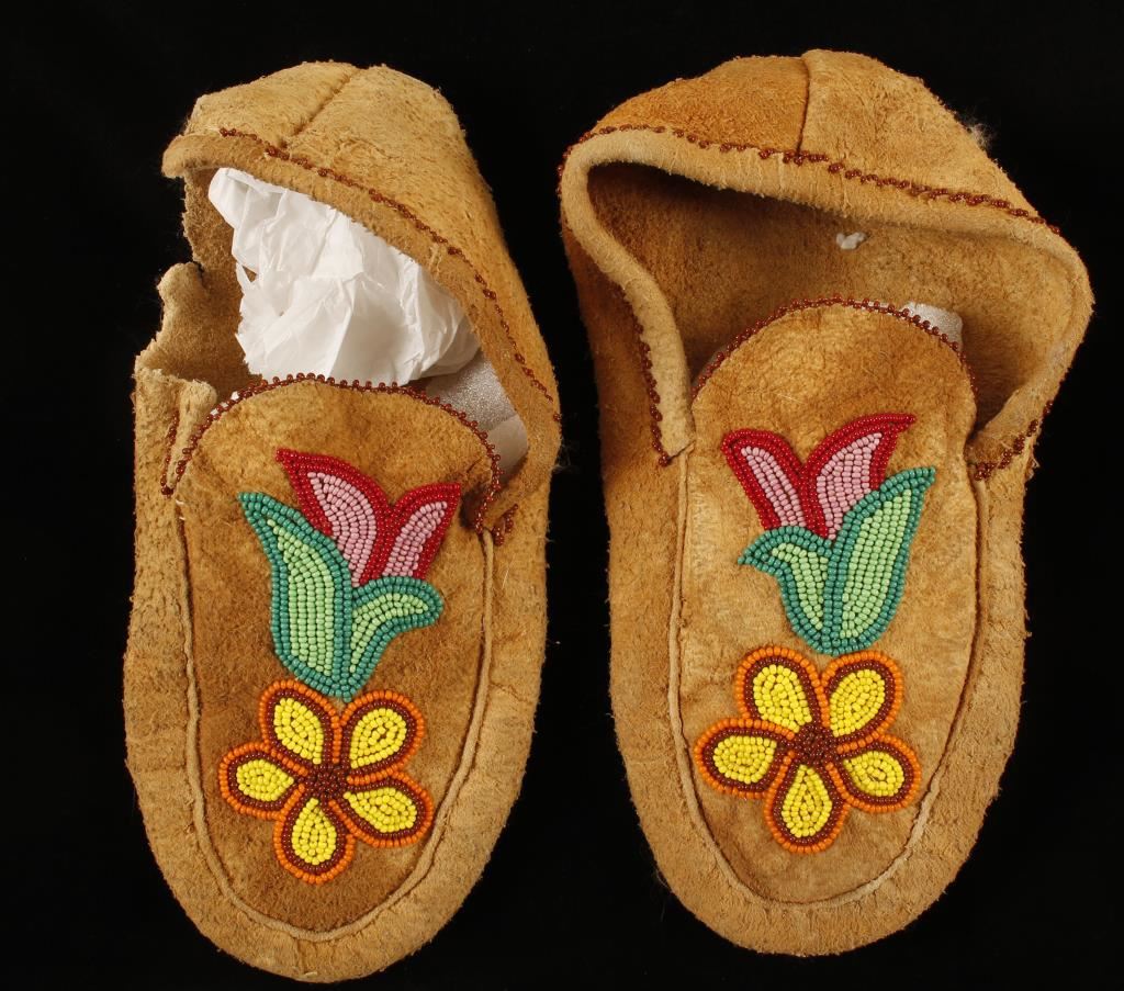 Lot 973 Native American Unlined Leather Beaded Moccasins