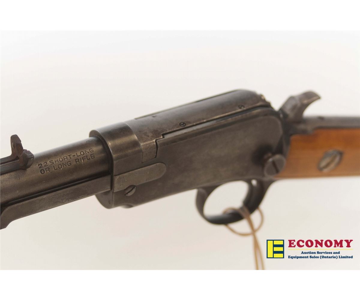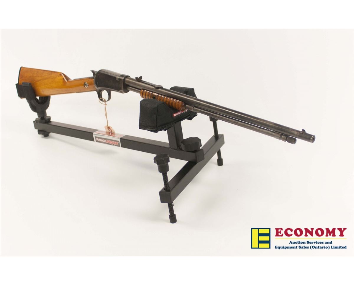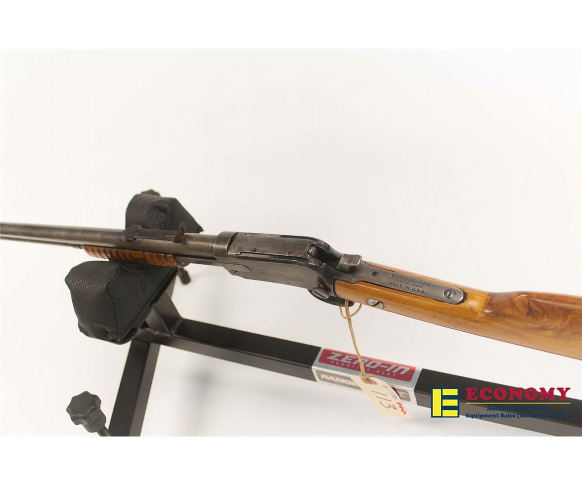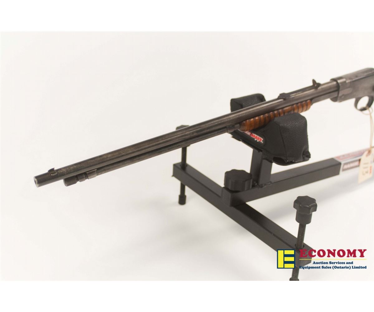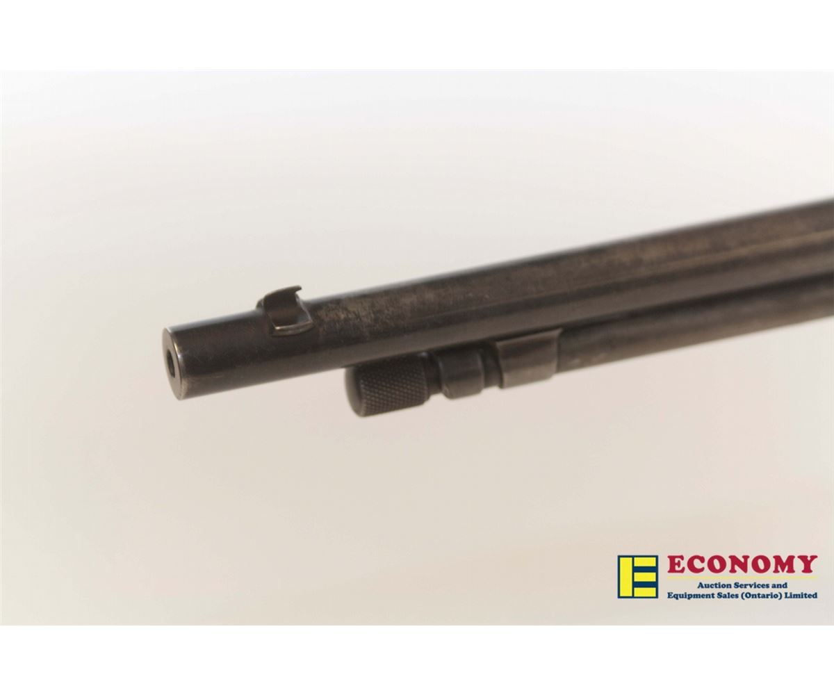 Winchester 1906 Rifle (Non-Restricted) The barrel is 20", pump action, 22 caliber. The wood is refinished, bluing is grey and worn. .22 caliber short-long-long rifle. SN: 846300