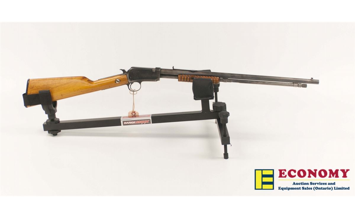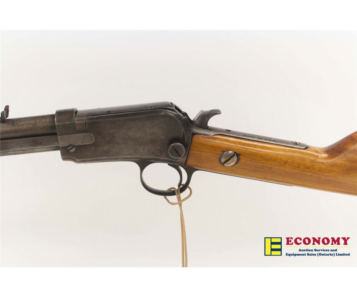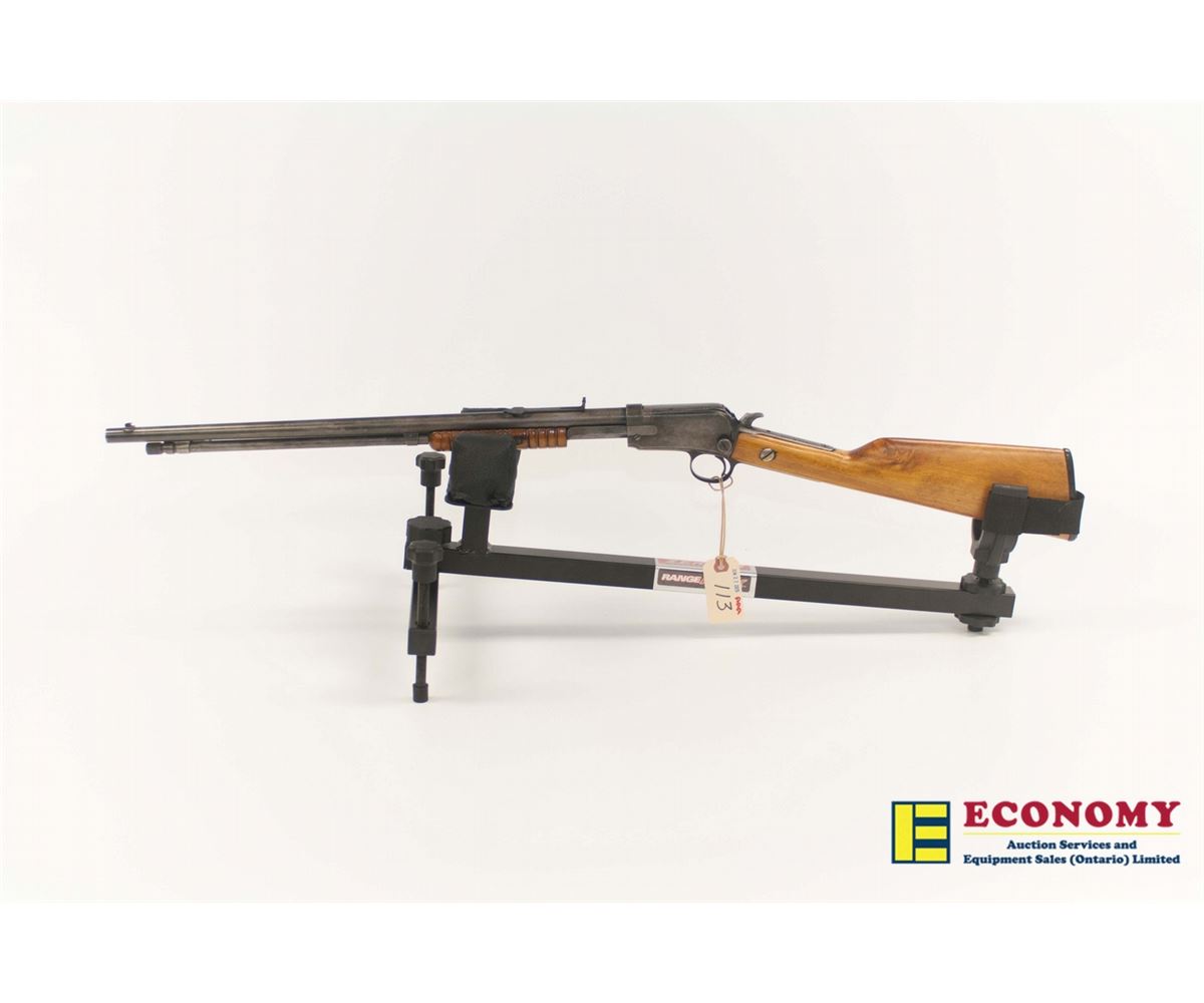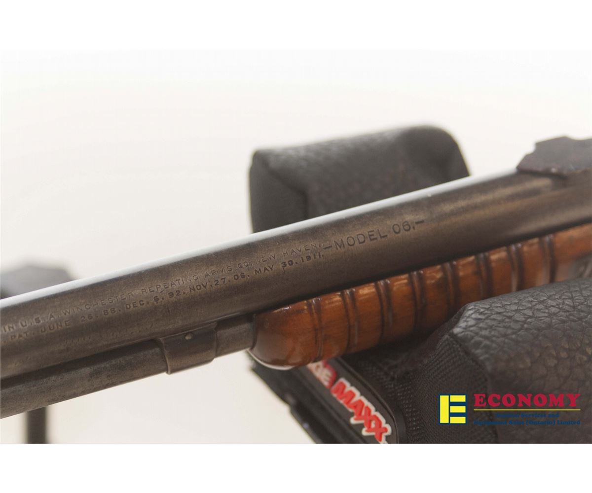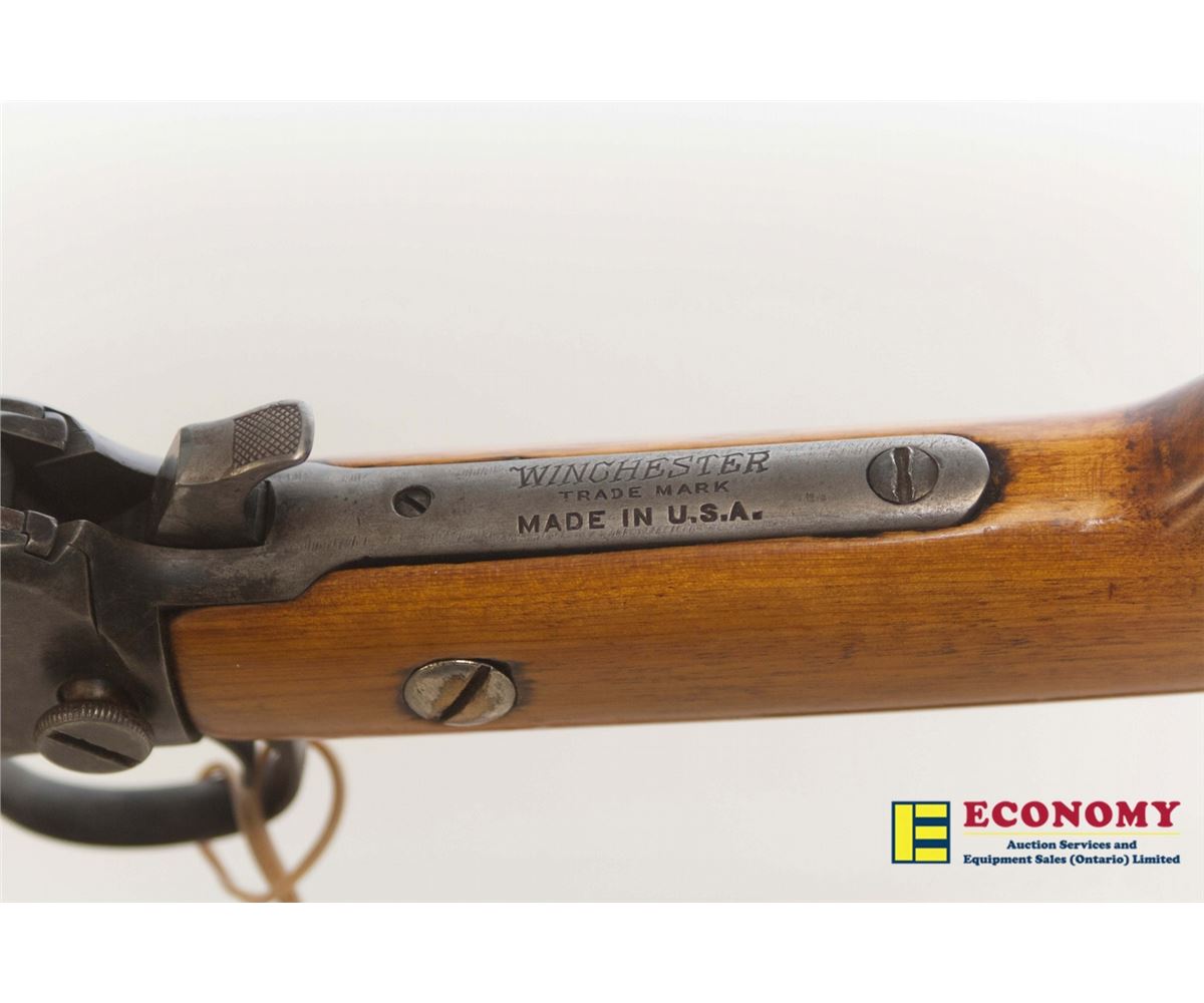 Winchester 1906 Rifle (Non-Restricted) The barrel is 20", pump action, 22 caliber. The wood is refinished, bluing is grey and worn. .22 caliber short-long-long rifle. SN: 846300