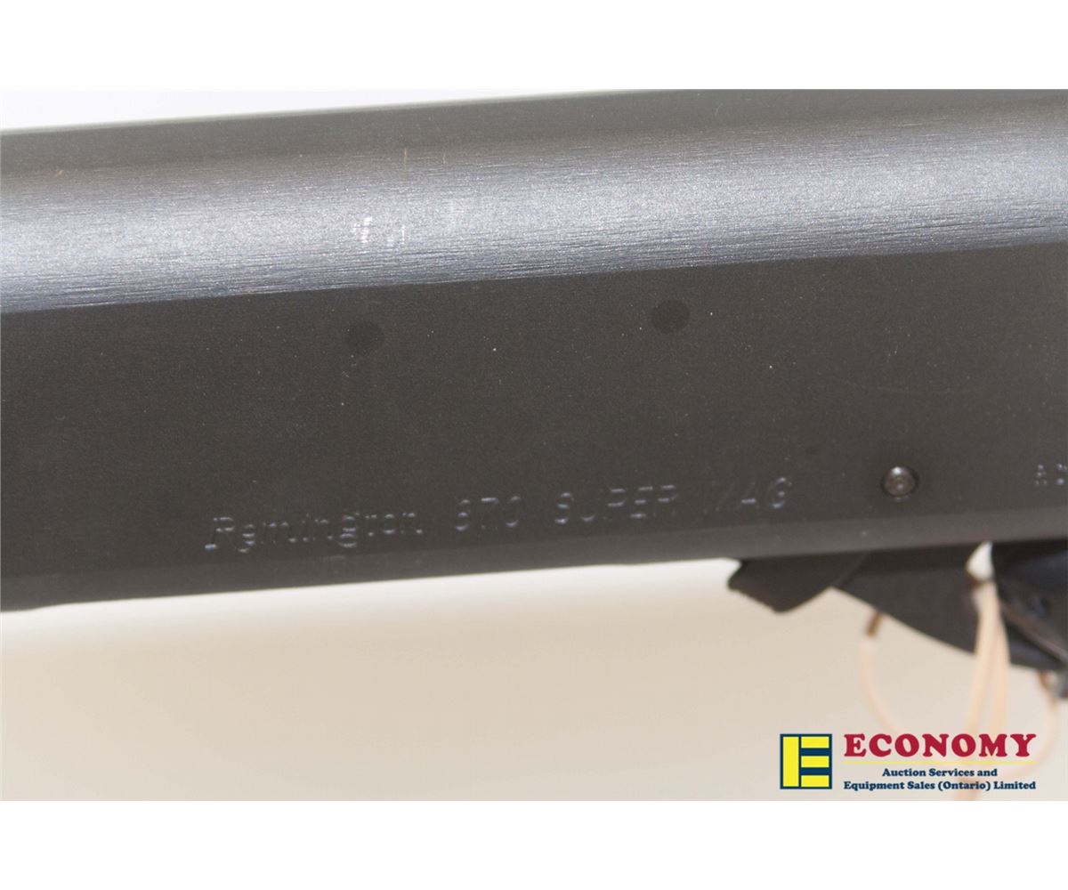 Remington 870 Super Mag Shotgun (Non-Restricted) The barrel is 28" with removable full choke, pump action, 12GAx 3 1/2" . The wood and matte finish have a few marks and the bore is in excellent condition. Laminate wood, rem choke system, full choke inc. 3 1/2" magazine. SN: RS16337F