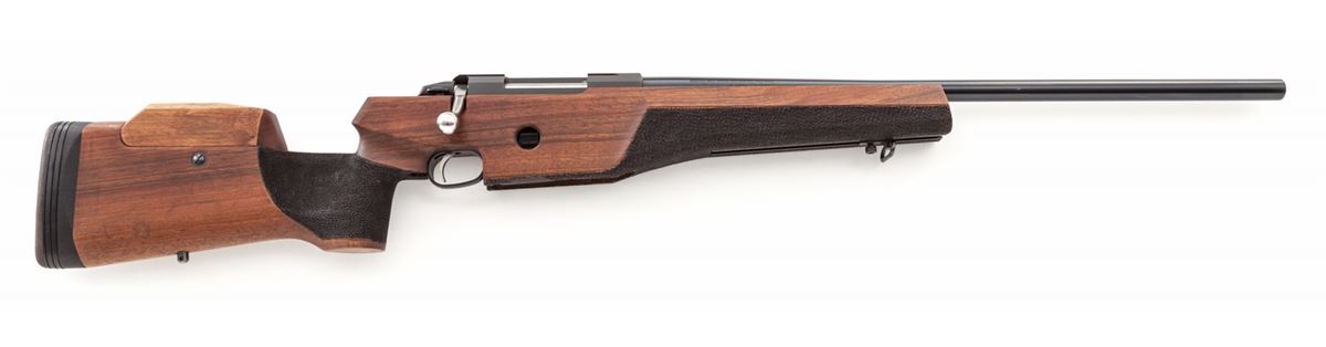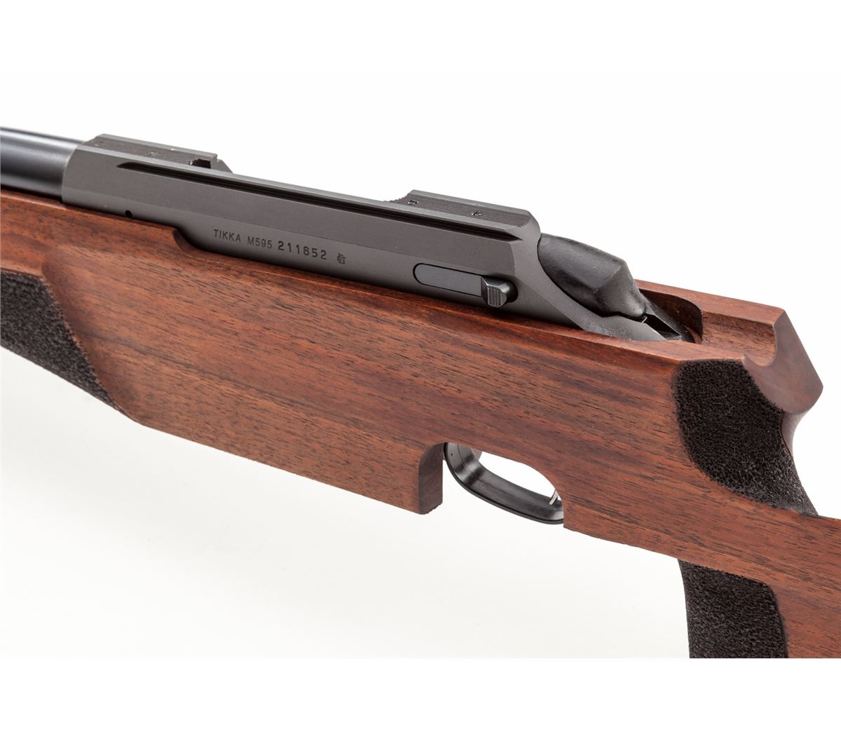 Tikka M595 Bolt Action Rifle, #211852, .308 cal., 24'' barrel, blue finish, knurled walnut stock with adjustable cheekpiece, rubber butt pad, and one removable 5-round magazine. Mfg'd by Sako in Finland under the Tikka name. Condition is excellent showing little use. Est.: $600-$800. (Modern)
