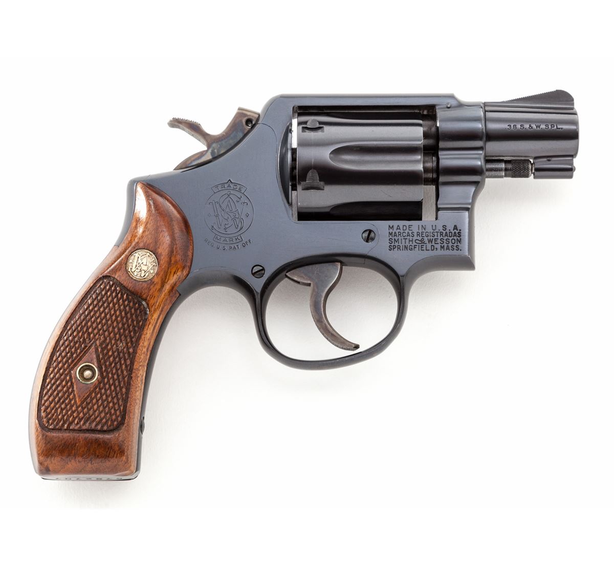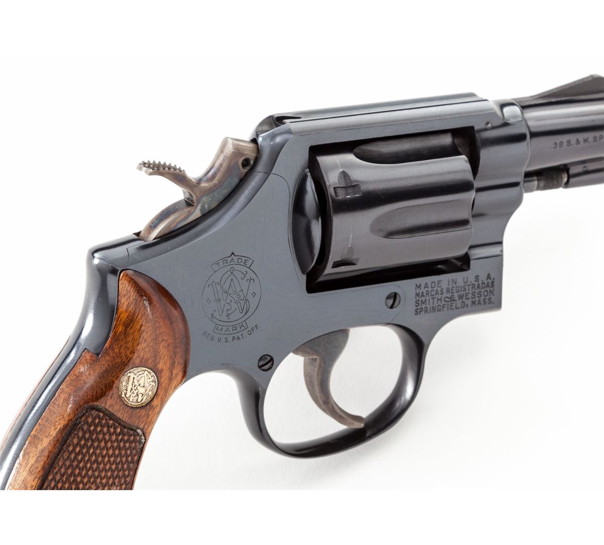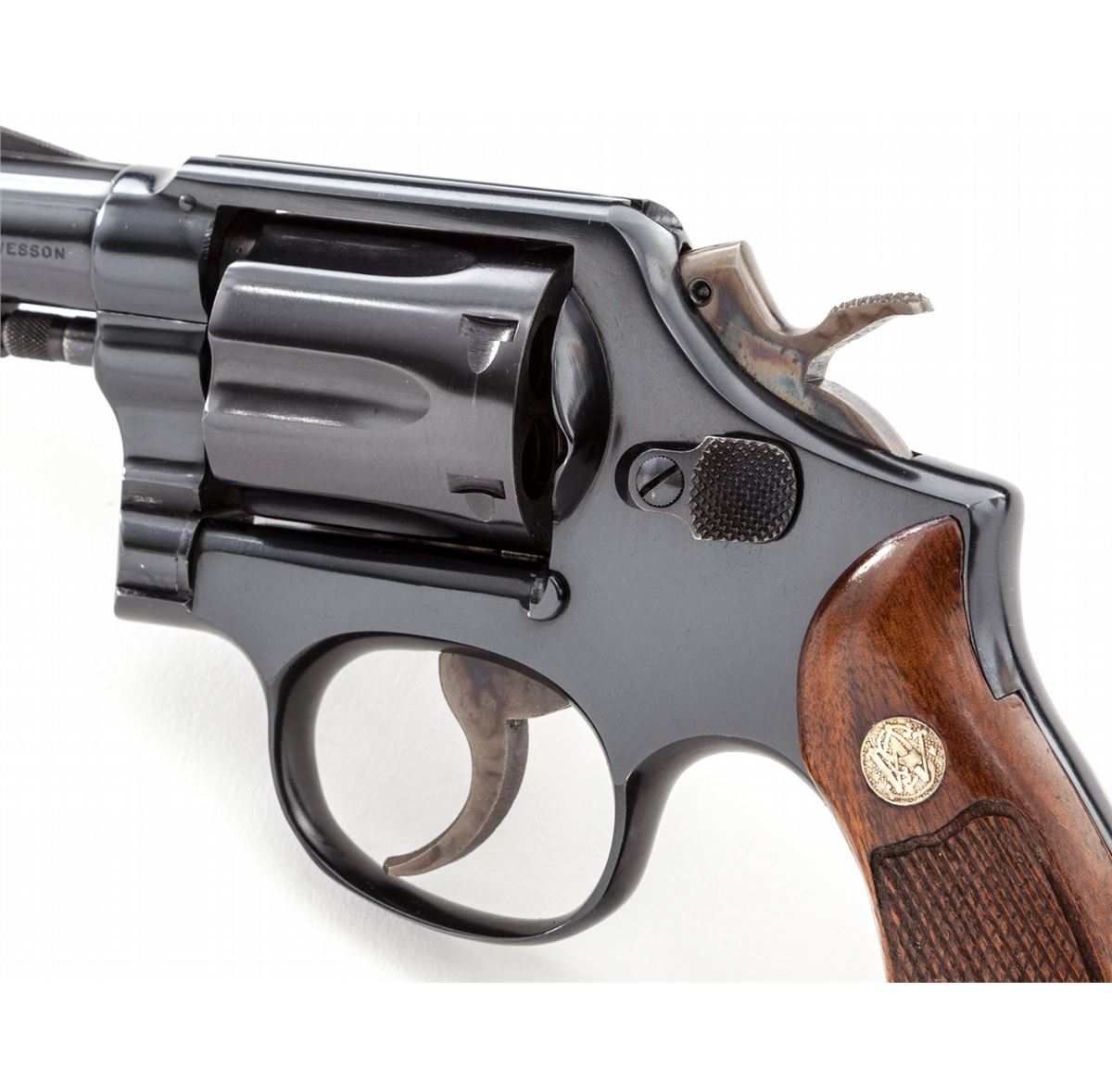 Smith & Wesson Model 10-5 Double Action Revolver, #C792707, 6-shot, .38 Spec. cal., 2'' barrel, blue finish, factory checkered diamond walnut grips, in original box, dating from 1965. Condition is excellent showing little use. Est.: $500-$750. (C&R/PPT)