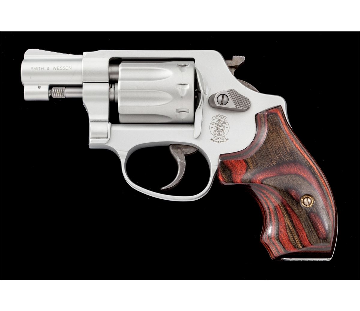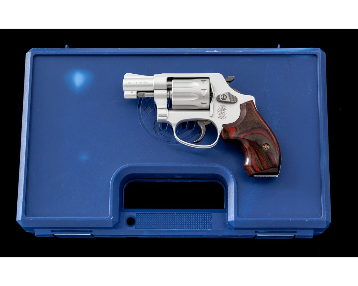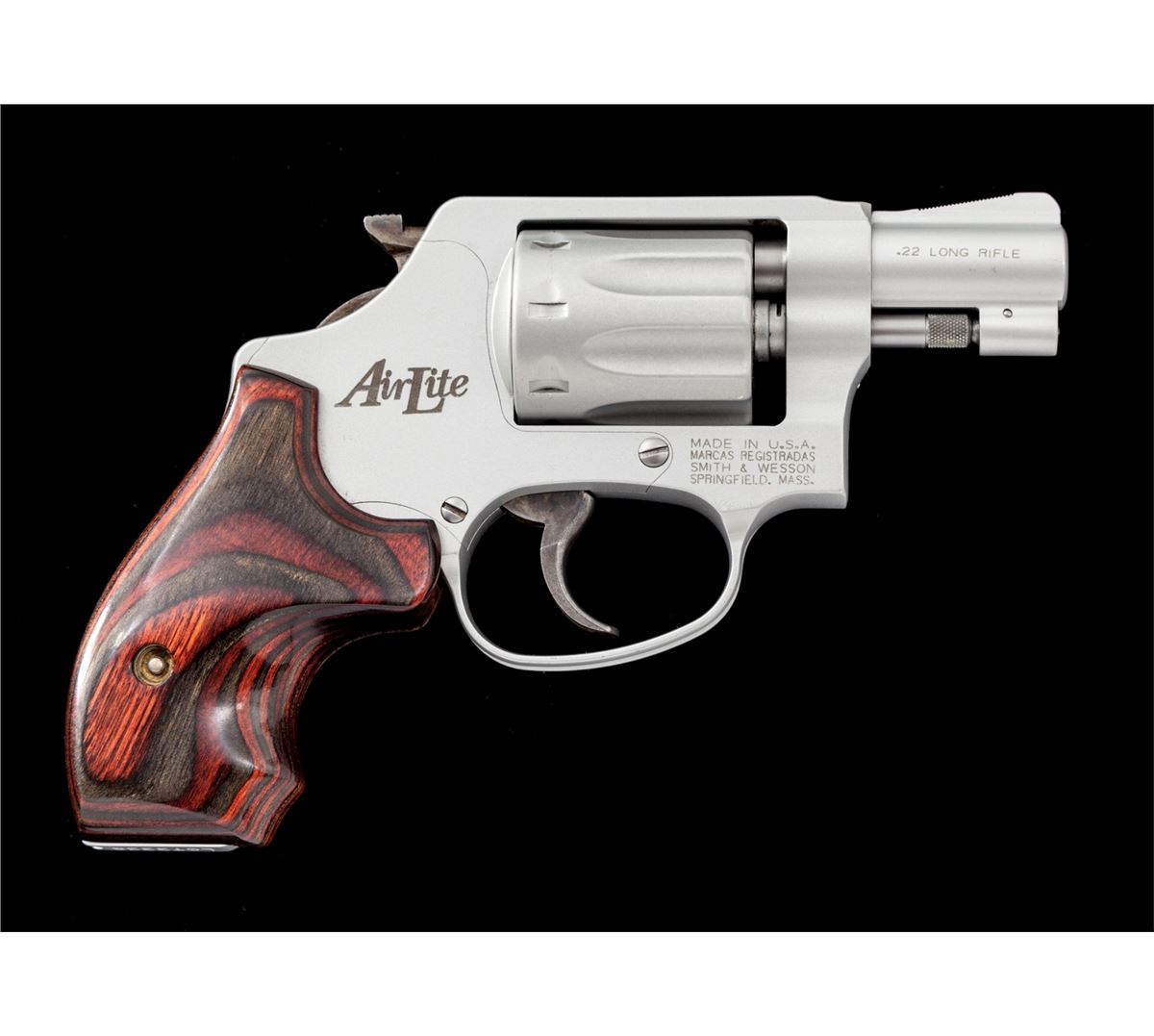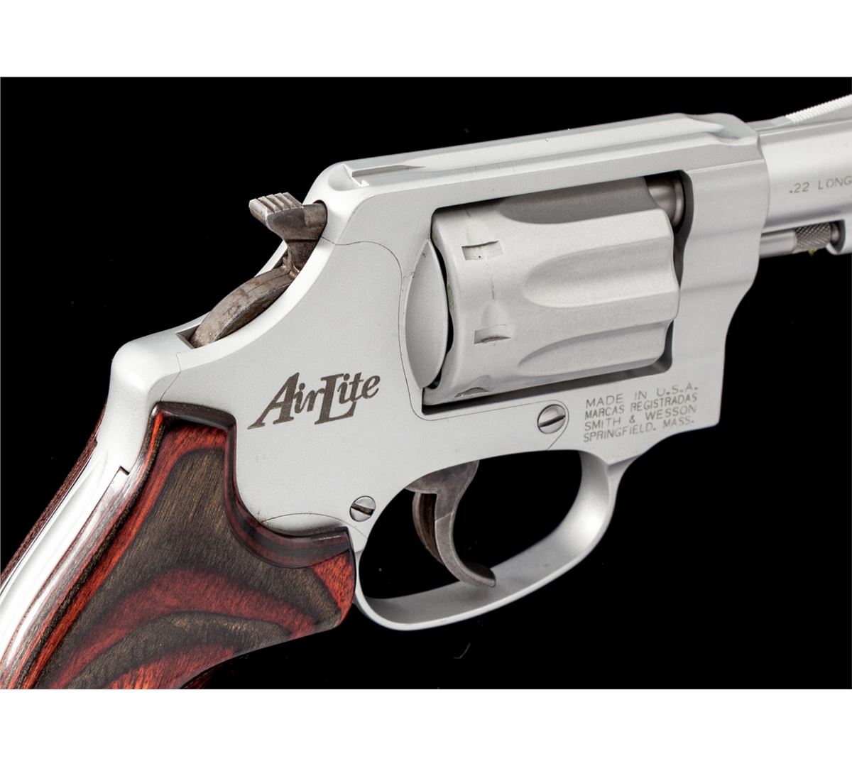 Smith & Wesson Model 317 Airlite Double Action Revolver, #LGT3338, .22 LR cal., 2'' barrel, bright finish, laminated hardwood grips, in original hard case. Condition is excellent, appearing as new. Est.: $400-$600. (Modern/PPT)