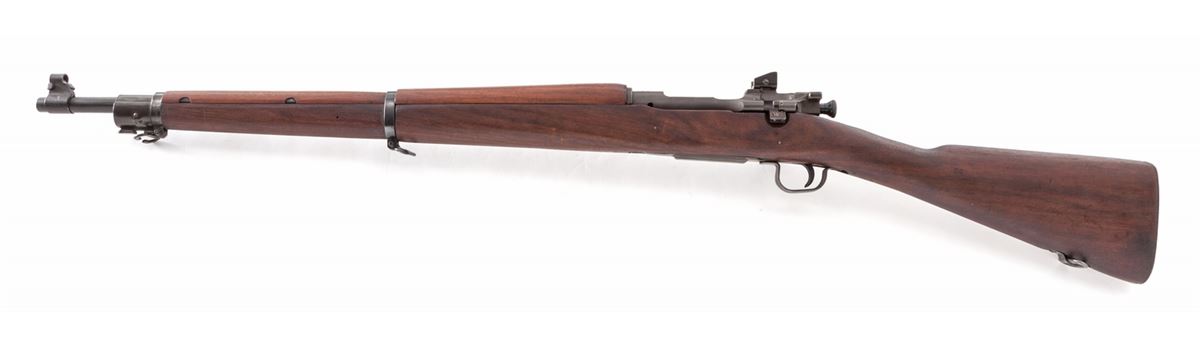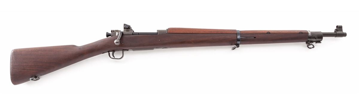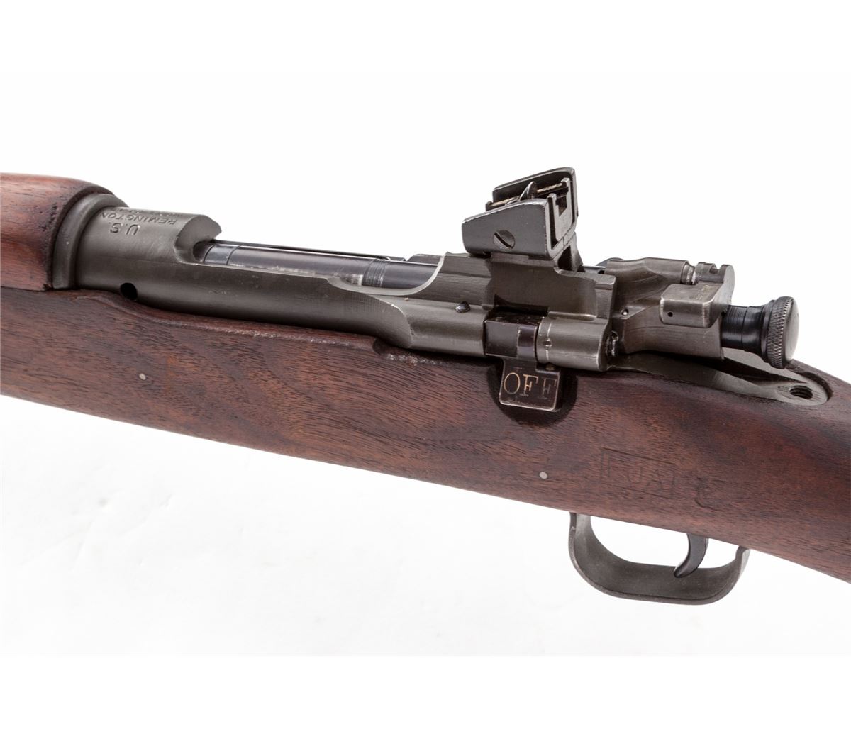 U.S. Model 03-A3 Bolt Action Rifle, by Remington, #3555108, .30-06 cal.,2 4'' ''RA'' barrel dated 2-44, blue and parkerized finish, cartouched walnut stock, with later ''OG'' inspector's mark to left side. Condition is excellent retaining approx. 97% original finish, with some thinning to stacking swivel band. Action is good, two-groove barrel is bright. Est.: $500-$750. (C&R)