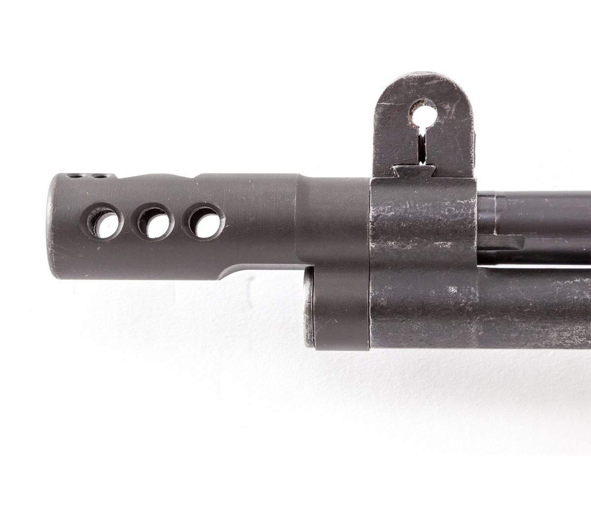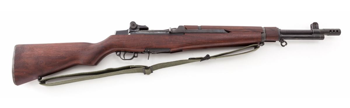 Tanker Garand Semi-Automatic Rifle, with receiver by Springfield, #3594255, .308 cal., 17'' barrel with 2-1/2'' muzzlebrake, phosphate finish, walnut stock, upper and forward handguard. Triggerguard modified to accept M14 magazine; one five-round magazine included. Condition is excellent as modified showing little use. Est.: $750-$1,000. (C&R)