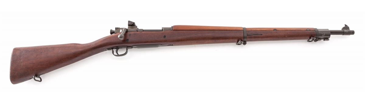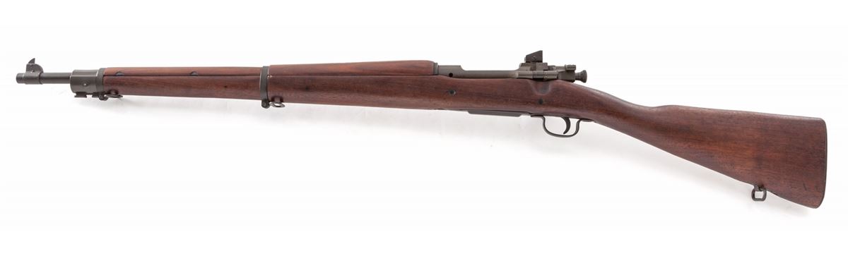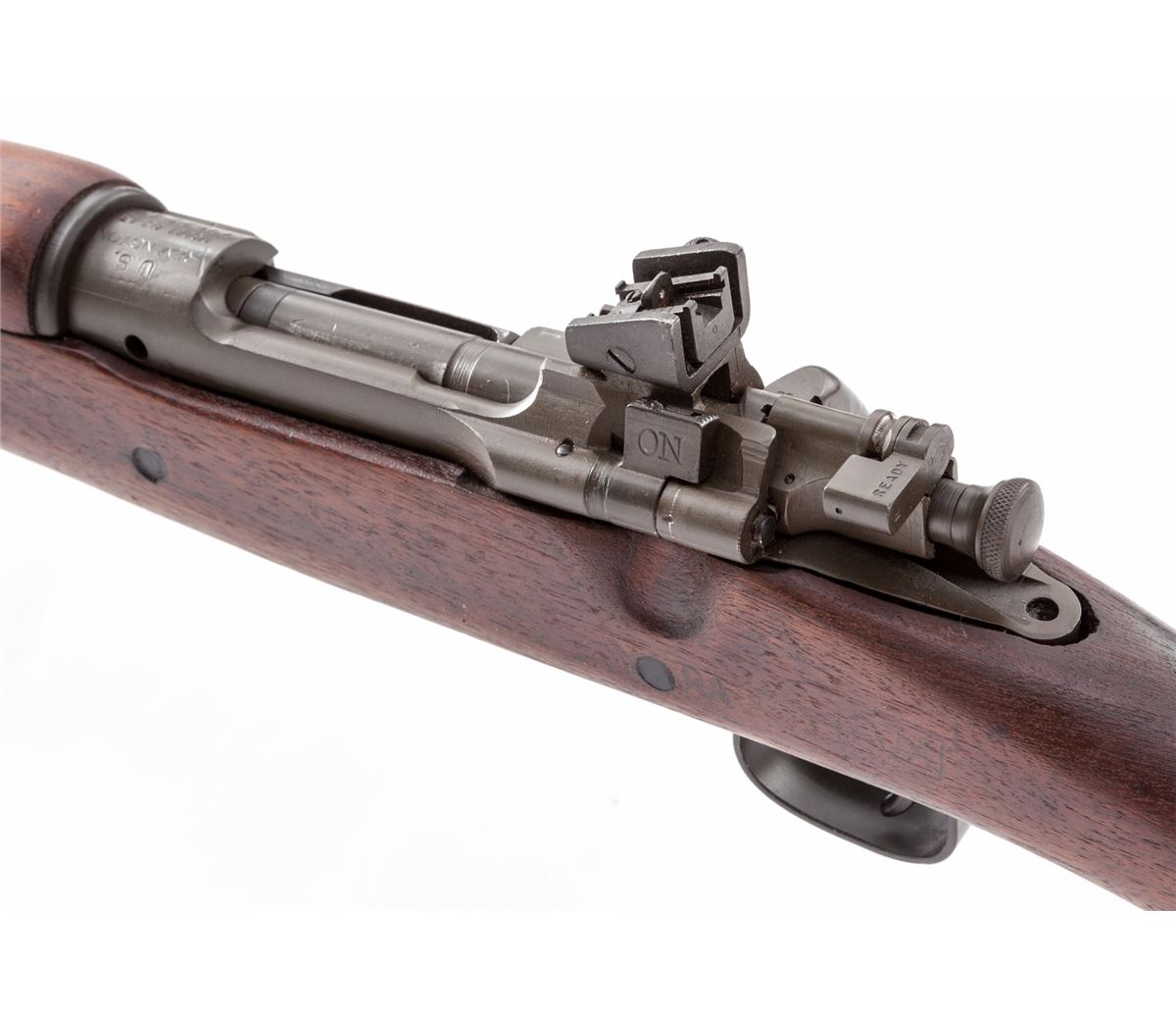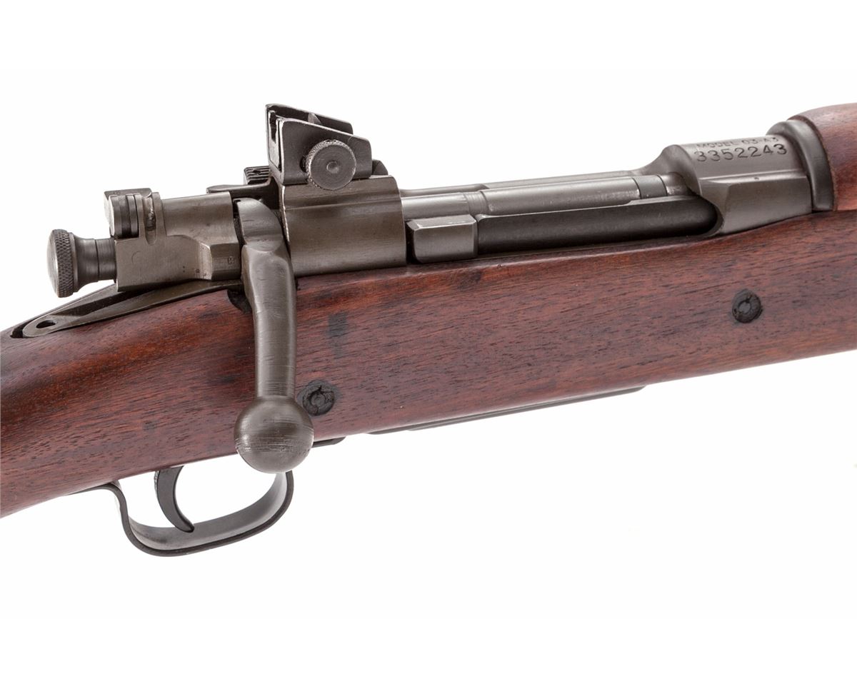 U.S. Model 03-A3 Bolt Action Rifle, by Remington, #352243, .30-06 cal., 24'' barrel dated 12-42, parkerized finish, ''FJA/RA'' cartouched walnut stock, with later ''OG'' arsenal marking. Condition is excellent showing only the lightest wear in actioning areas and thinning to front sight band from sight cover use. Stock remains in excellent condition with only minor impressions and no evidence of sanding. Action is crisp, four-grooved bore is mirror bright. Est.: $500-$750. (C&R)