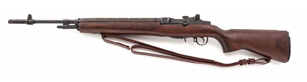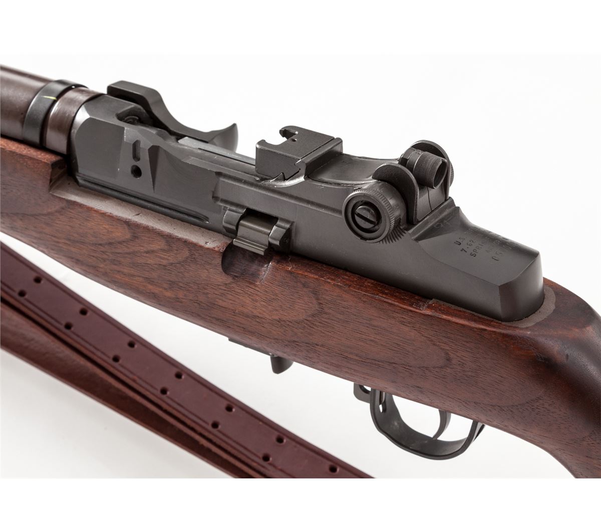Springfield M1A National Super Match Semi-Automatic Rifle, #050008, .308 cal., 22'' Douglas carbon barrel with muzzlebrake, parkerized finish, heavy glass-bedded walnut stock, National Match hooded rear sight, .072 front blade, Match tuned two-stage trigger tuned to 4.5 to 5 lb. pull with 1-10'' rifling twist, TRW bolt, GI small parts, with one-five round magazine and leather sling. Rifle weighs in at 11.2 lbs. Condition is excellent showing little overall use. MSRP: $2,871. Est.: $2,000-$2,500. (Modern)