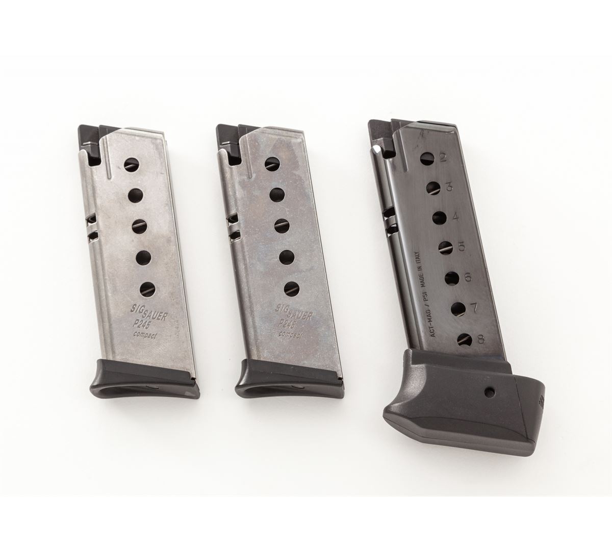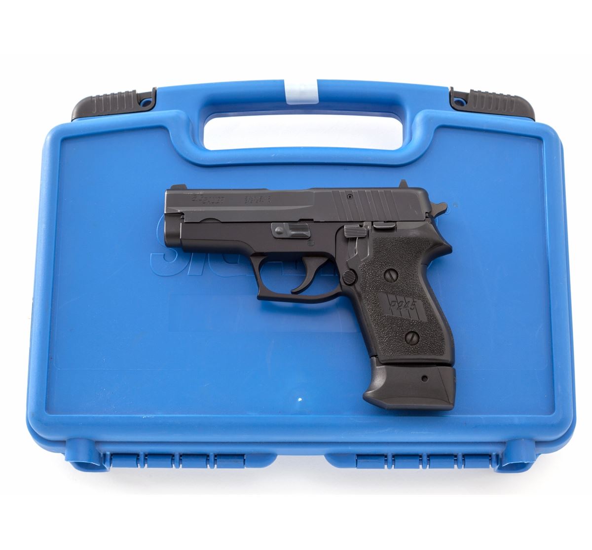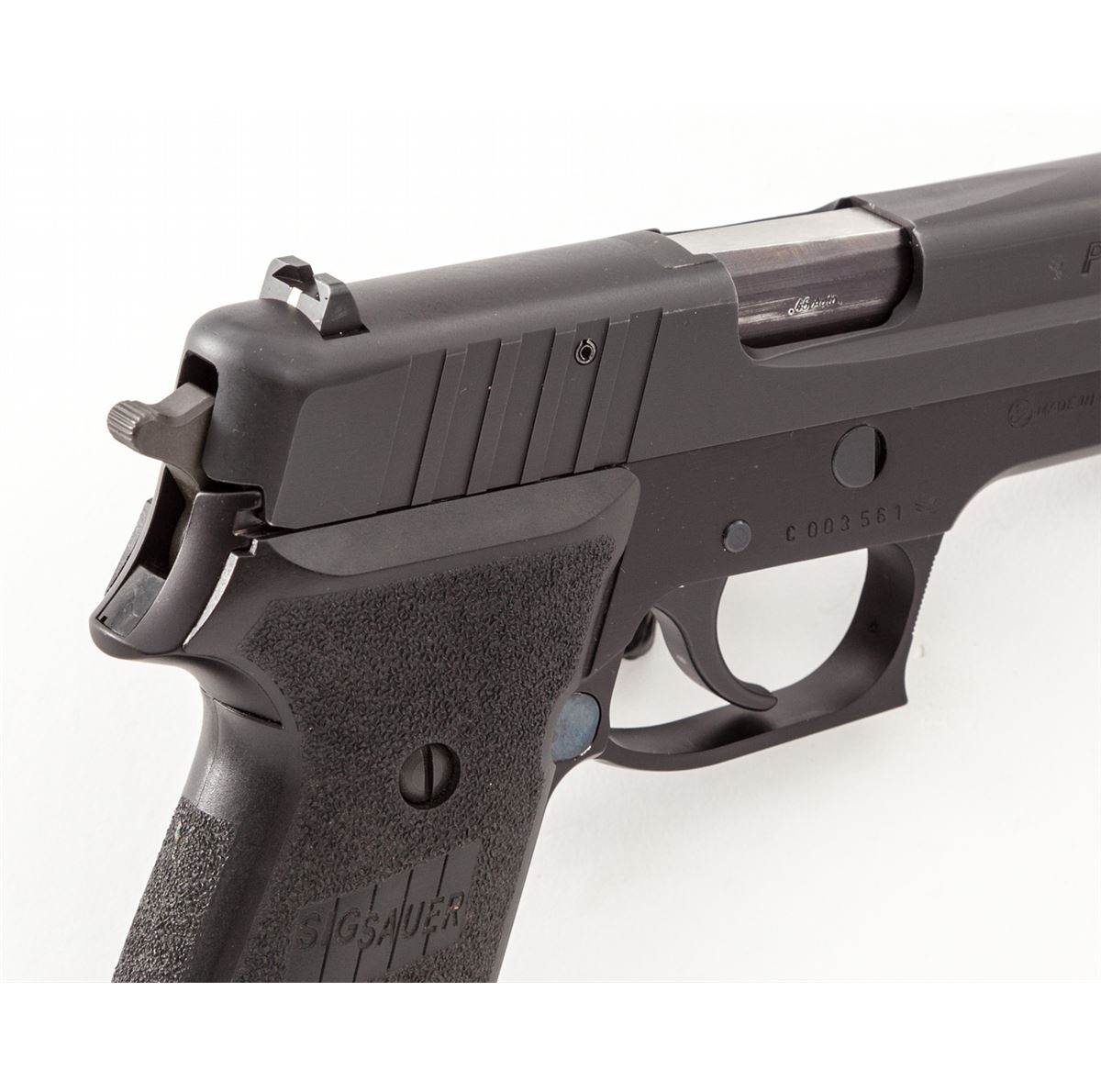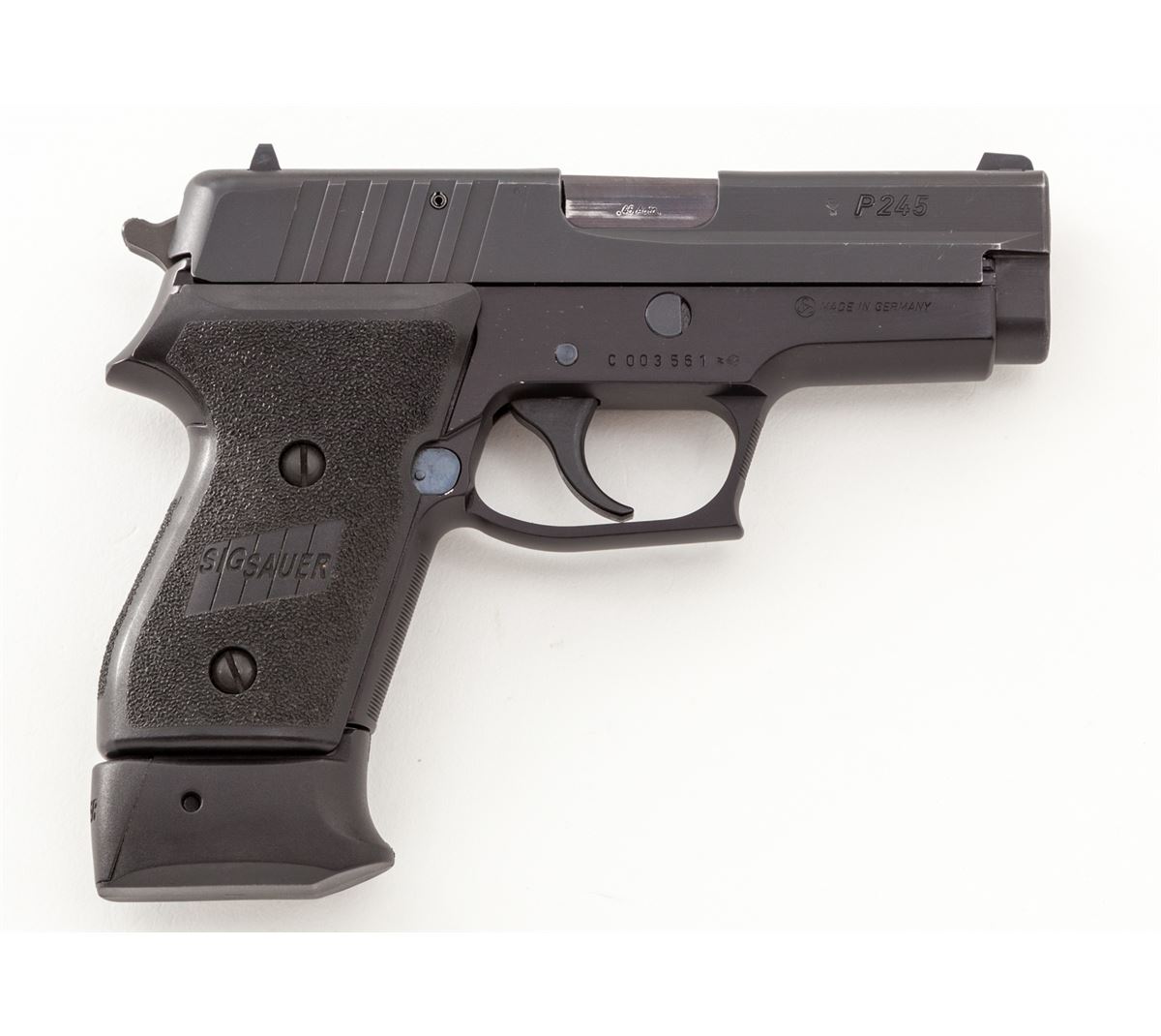 Sig Sauer P245 Semi-Automatic Pistol, #COO3561, .45 Auto cal., 3-3/4'' barrel, matte finish, factory pebblegrain grips, in original box with four (4) total magazines. Condition is excellent showing little use. Est.: $500-$750. (Modern)
