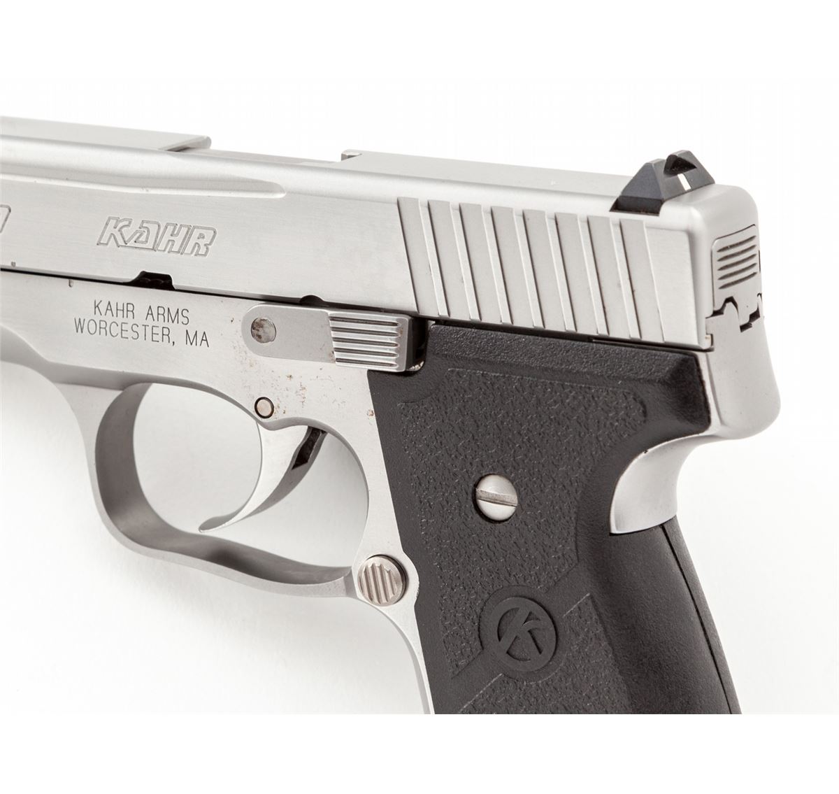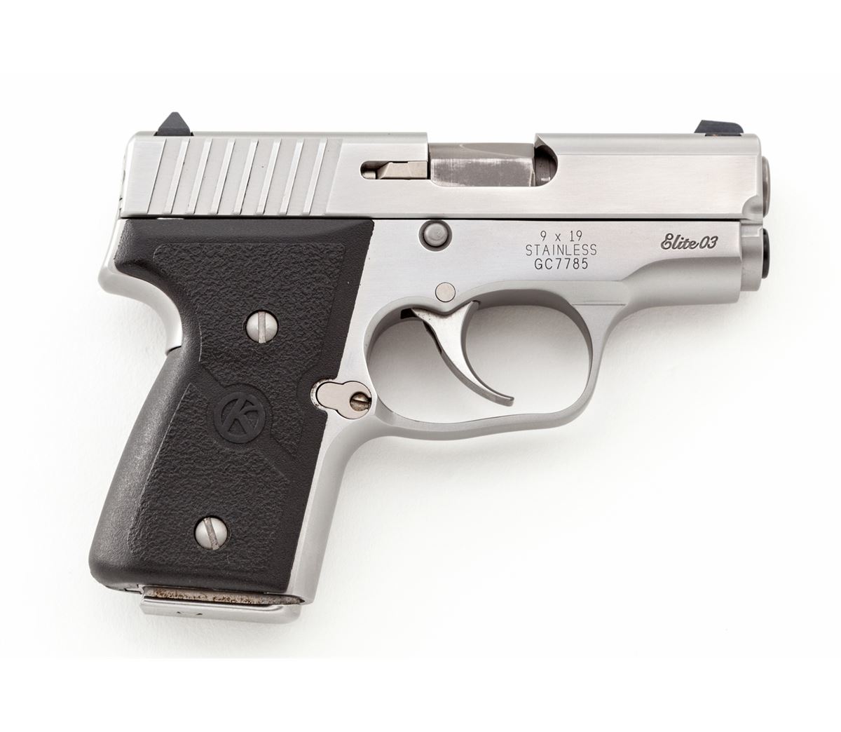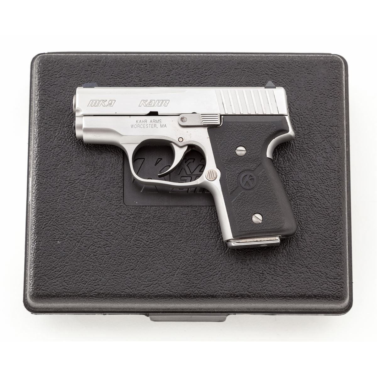 Kahr MK 9 Elite-03 Semi-Automatic Pistol, #GC7785, 9mm, 2-3/4'' barrel, stainless steel, factory black plastic grips, with two (2) magazines. Condition is excellent, appearing near new, in original box. Est.: $450-$650. (Modern/PPT)