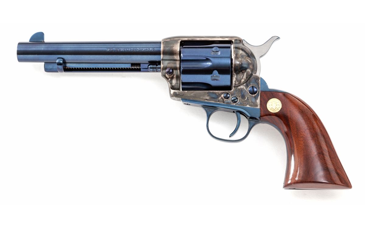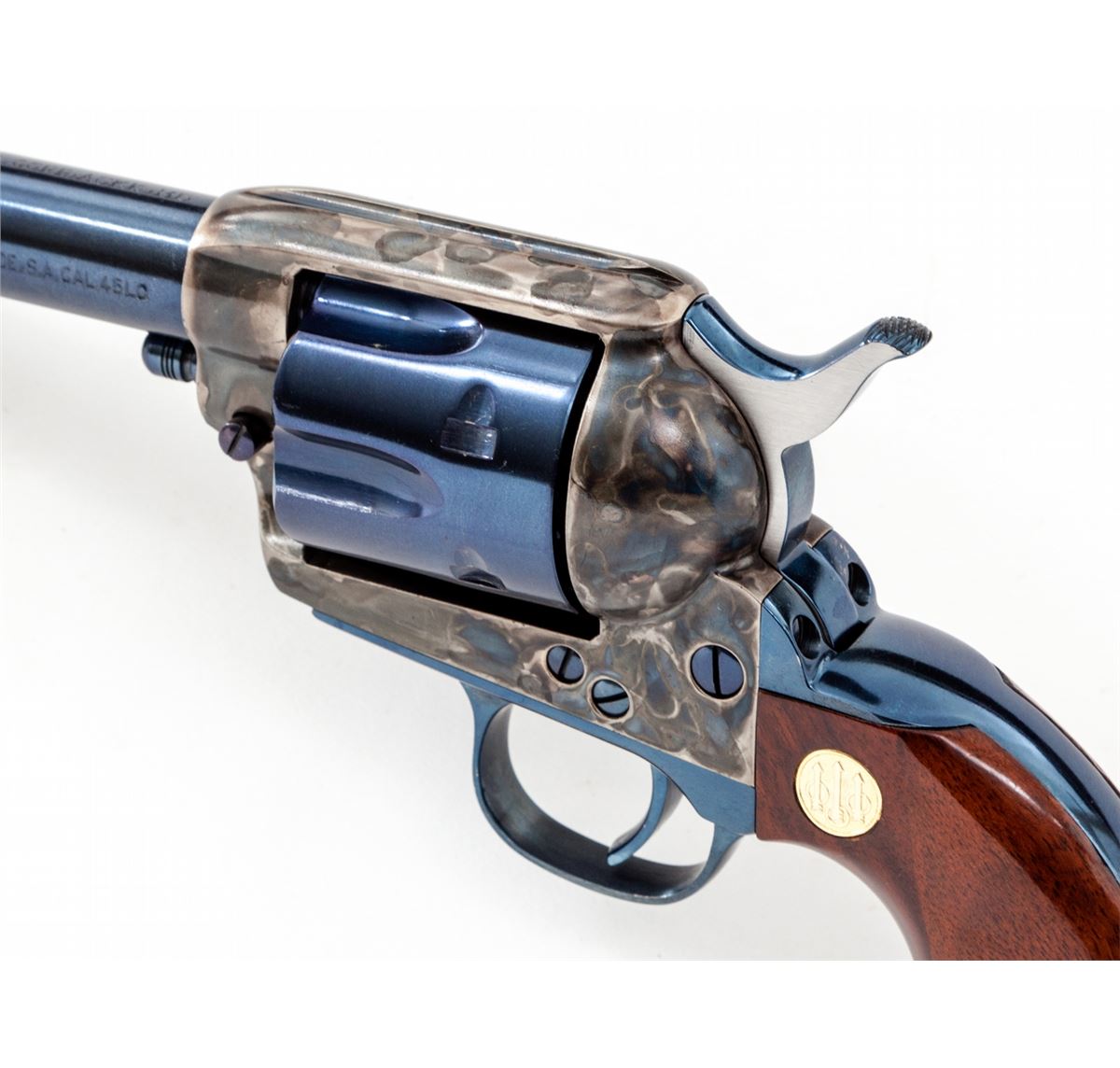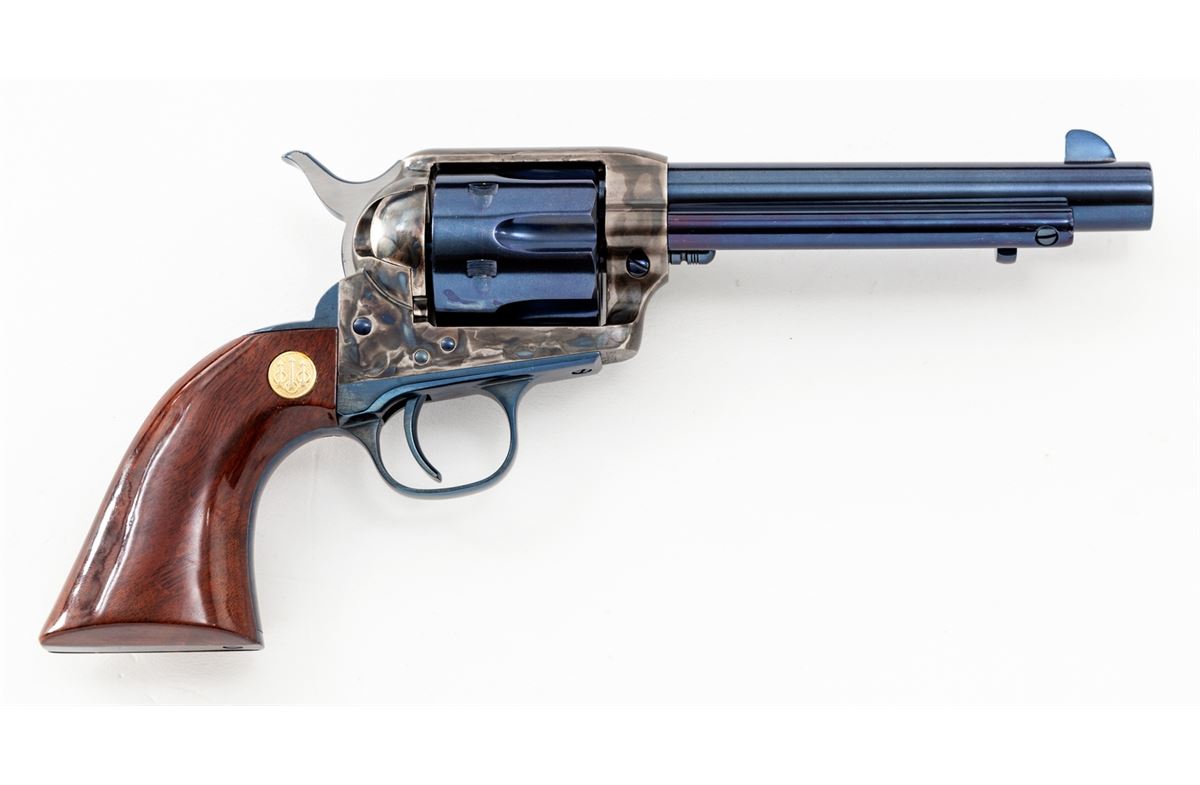 Beretta Stampede Single Action Army Revolver, #B15273, .45 Colt cal., 5-1/2'' barrel, royal blue and case hardened finish, one-piece walnut grips with Beretta medallions. Condition is excellent showing very minor wear to backstrap. Est.: $500-$750. (C&R/PPT)