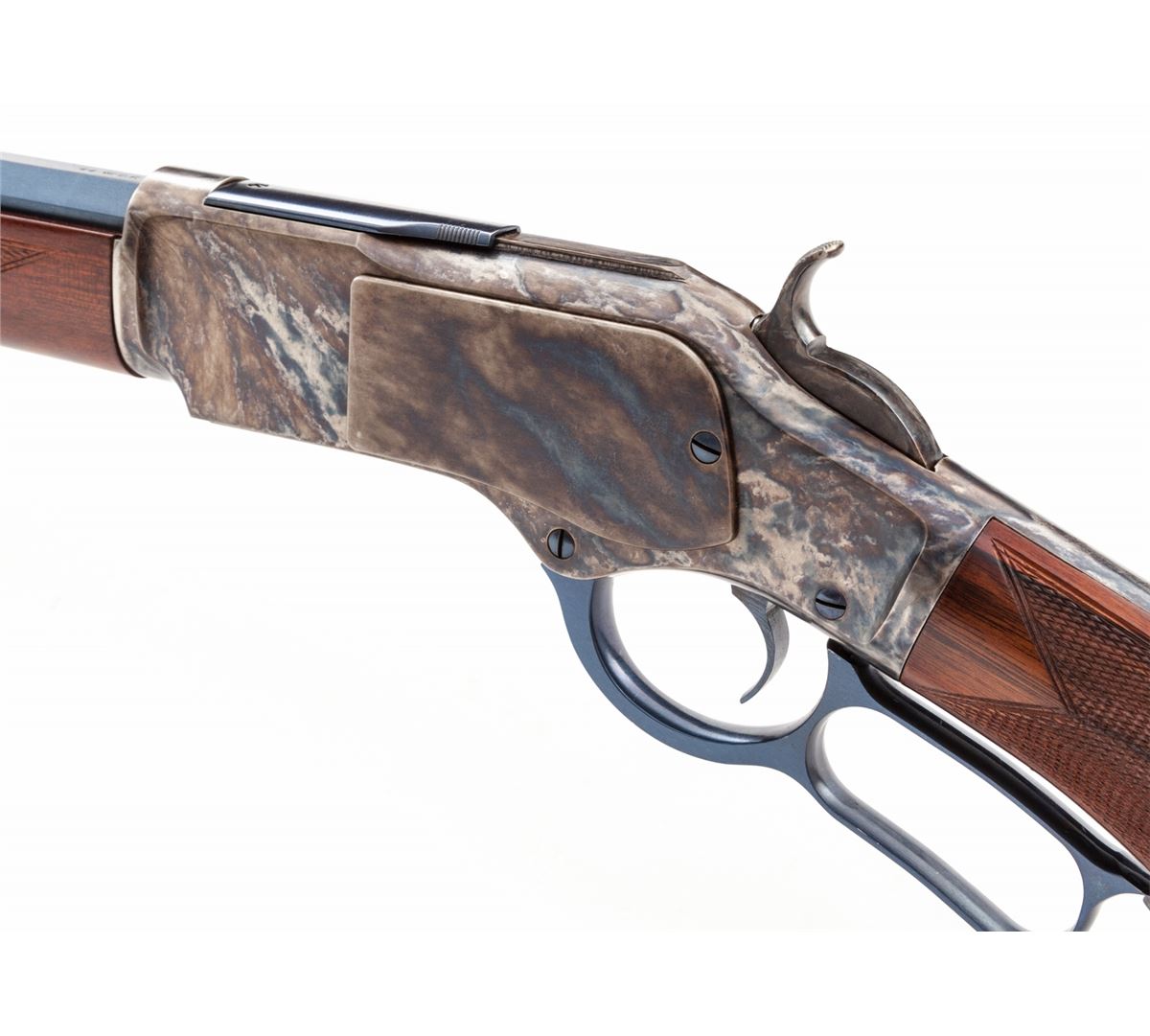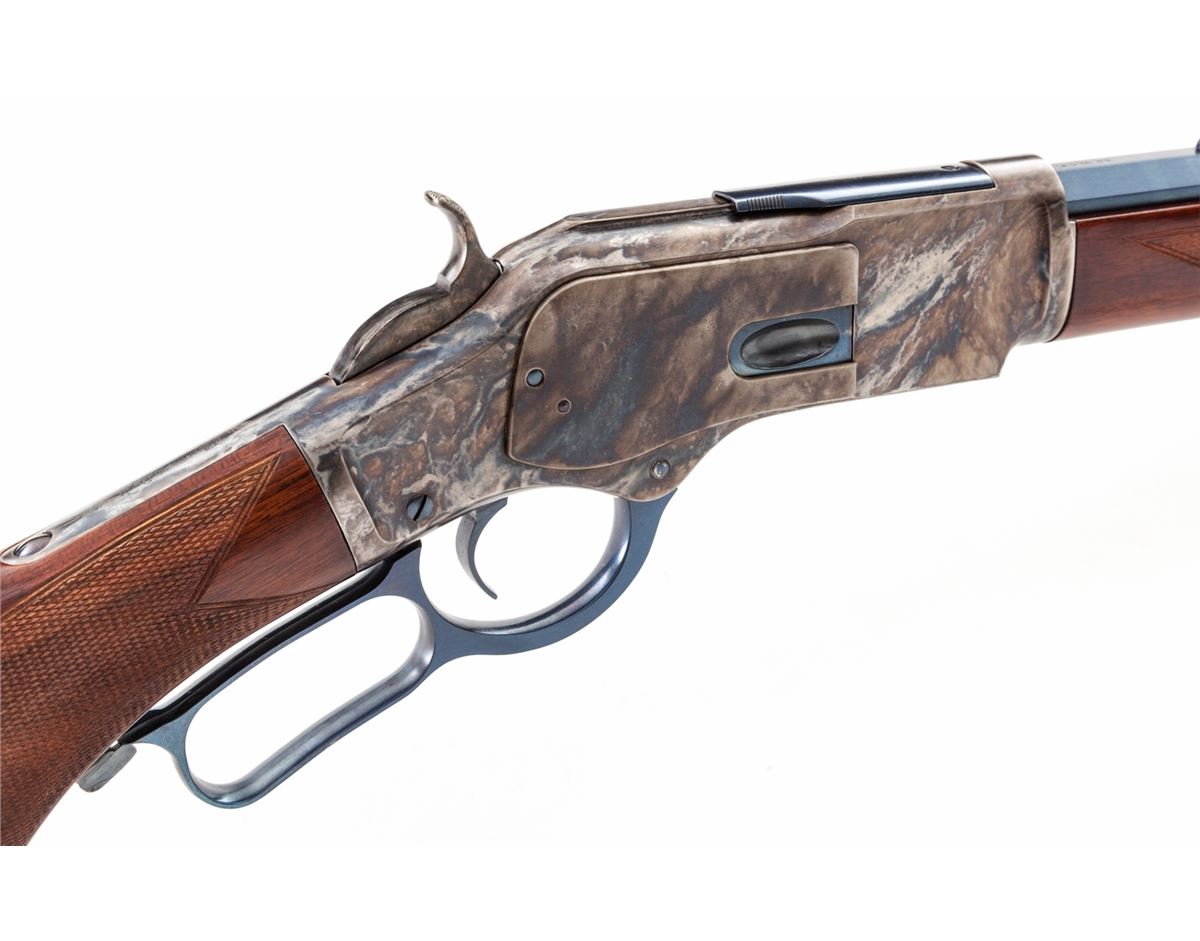 Uberti Copy of a Winchester Model 1873 Lever Action Rifle, #62566, .44-40 cal., 24'' half-round blue barrel, case hardened frame, button mag, checkered pistol-grip walnut stock, with all other standard features. Condition is excellent showing little use. Est.: $800-$1,200. (Modern)